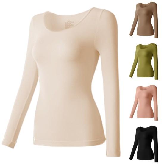 Стильный дизайн: Эти термотопы однотонного цвета, с круглым вырезом и длинными рукавами не только модные, но и универсальны, идеально подходят для различных вариантов укладки.