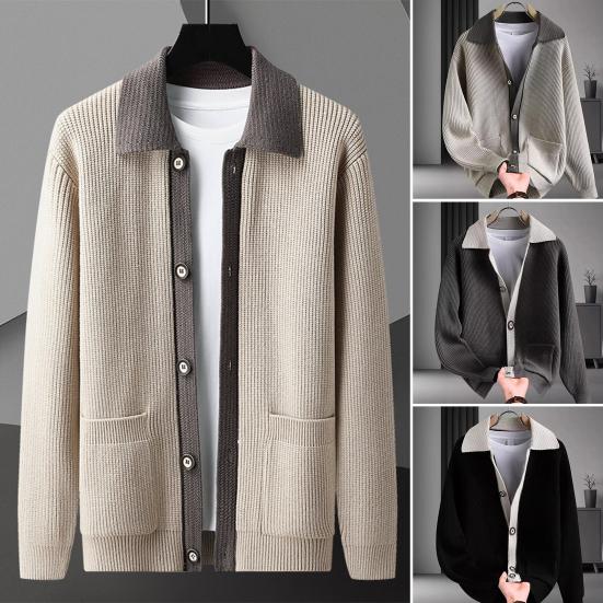 Этот стильный свитер отличается модным дизайном с использованием цветовых блоков, что делает его идеальным для сочетания с повседневными брюками, джинсами или костюмными брюками.. Этот кардиган с длинными рукавами и отворотами воплощает изысканный деловой стиль, который одновременно моден и универсален..