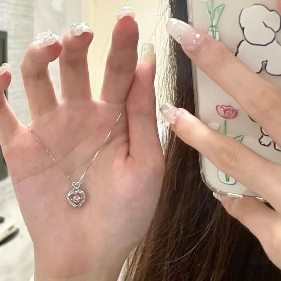 Характеристики: Розовый горный хрусталь, подвеска в форме сердца, регулируемая длина