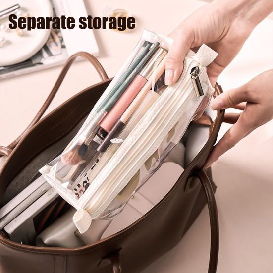 Легко очистить: Упростите уход за косметикой с помощью этой водонепроницаемой косметички, которую легко чистить.. Быстрая очистка восстанавливает его первозданное состояние, обеспечивая безупречный вид на протяжении всех ваших поездок без ущерба для стиля или функциональности.