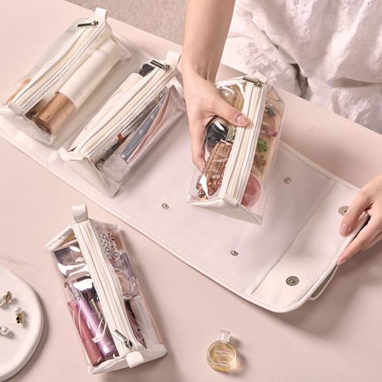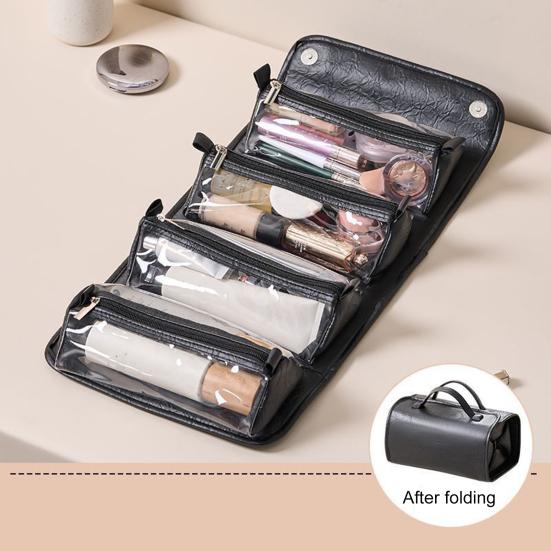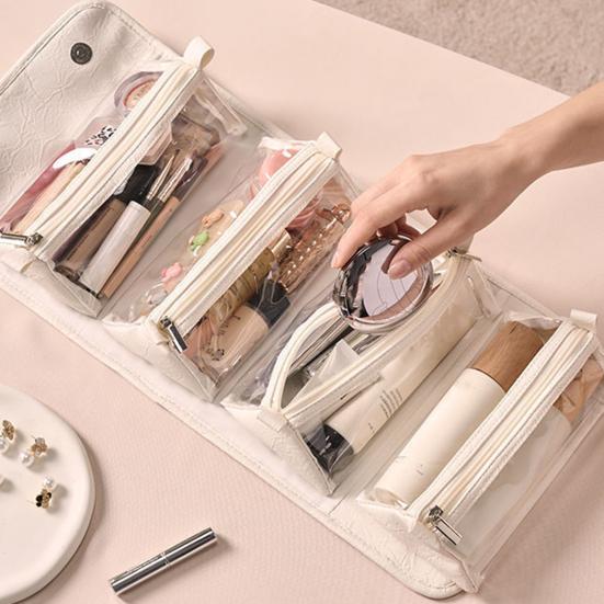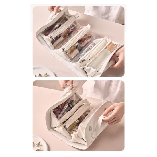 Большая емкость: Раскройте весь потенциал этой стильной косметички с ее вместительным отделением для хранения. Благодаря четырем съемным прозрачным отделениям он легко вместит всю вашу косметику, туалетные принадлежности, средства по уходу за кожей и кисточки для макияжа, что делает его незаменимым спутником в путешествиях или деловых поездках.