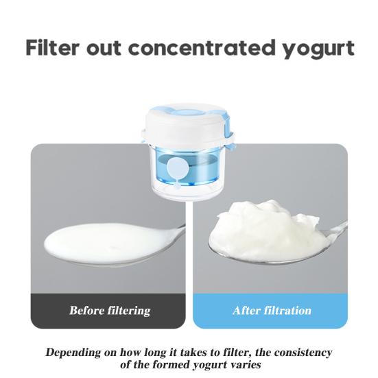 Улучшенная видимость: Прозрачный контейнер позволяет в режиме реального времени контролировать процесс фильтрации йогурта, обеспечивая точность и контроль над процессом.