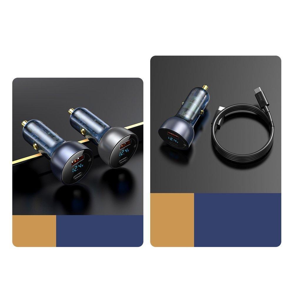 Baseus 65W Dual-Port Car Charger with USB/USB-C, SCP Quick Charge 4.0+, Power Delivery 3.0, LCD Display, Transparent