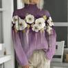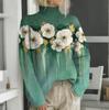Женская мода повседневная с длинным рукавом и принтом, с высоким воротом, шерстяной трикотаж