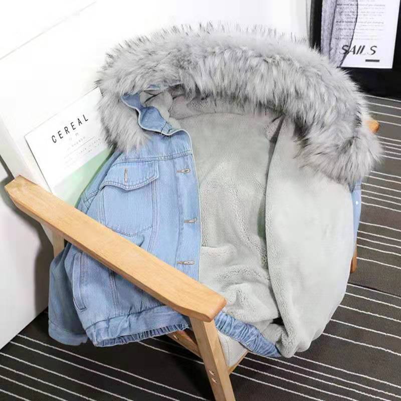 Джинсовая куртка из овечьей шерсти, женская зимняя корейская версия свободной утепленной хлопковой куртки с капюшоном, топы из хлопковой куртки