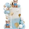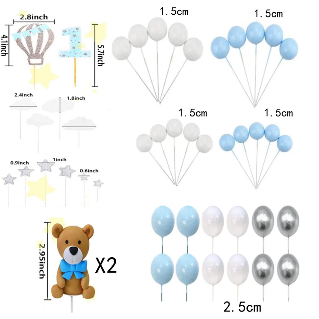 Синий плюшевый мишка украшение для торта 46 шт./компл. Мультяшные плюшевые шары для торта для детей и мальчиков Happy One 1st Birthday Baby Shower Decorats