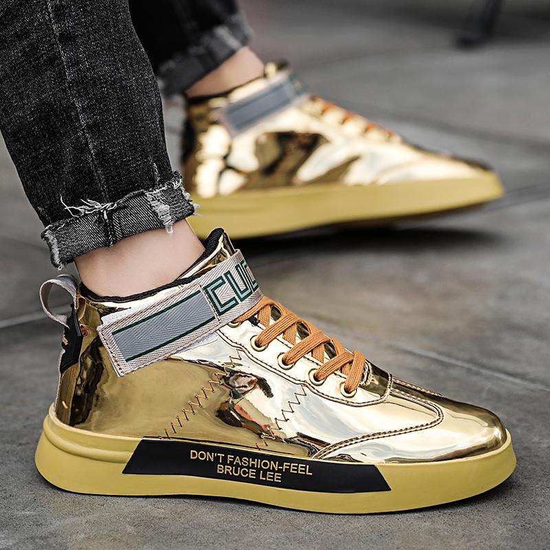 2024 Новые мужские роскошные кроссовки, модные блестящие зеркальные дизайнерские туфли, мужские кроссовки с золотым блеском, уличные хип-хоп мужские кроссовки для скейтбординга