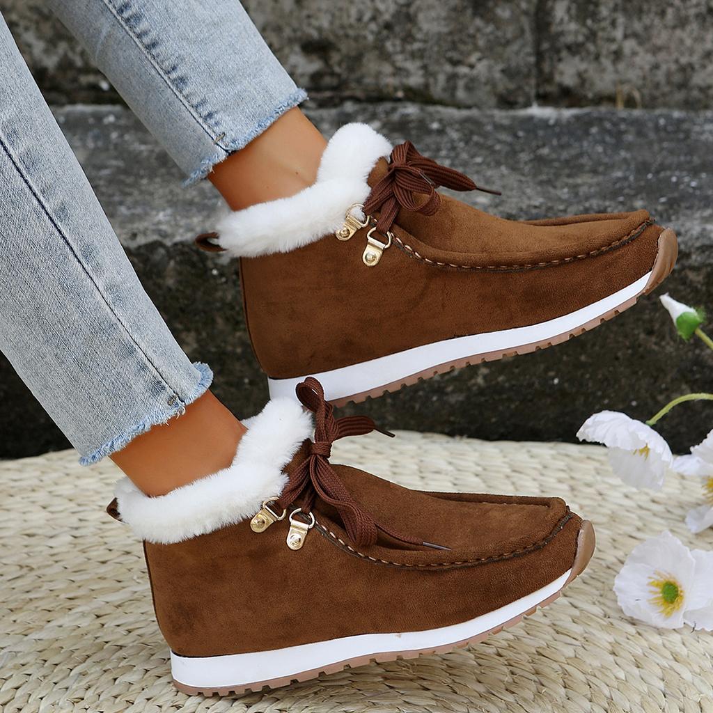 Зимние теплые ботинки для снега, уличные короткие хлопковые туфли на танкетке для женщин, классические ботильоны на шнуровке из бархата для женщин — купить товар онлайн с бесплатной доставкой по всему миру!