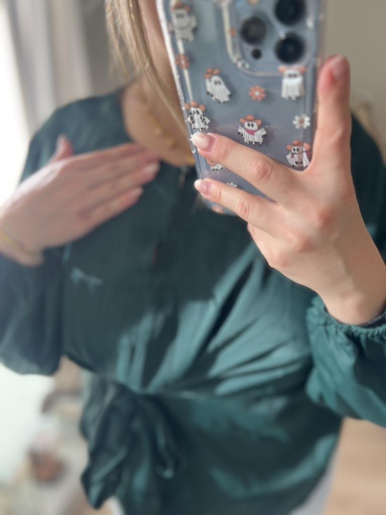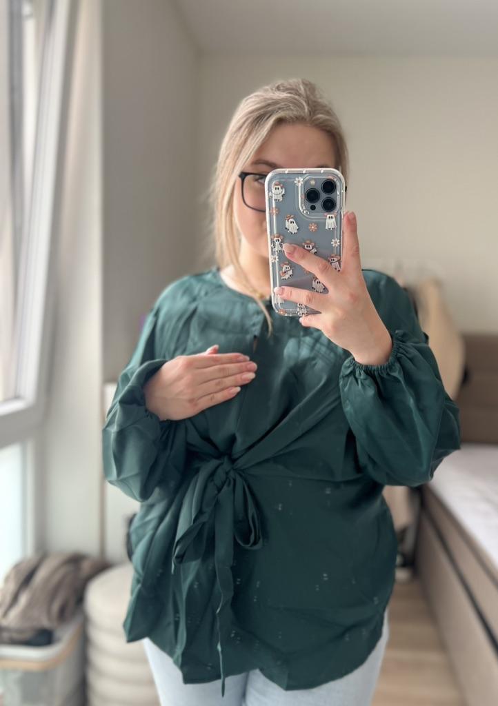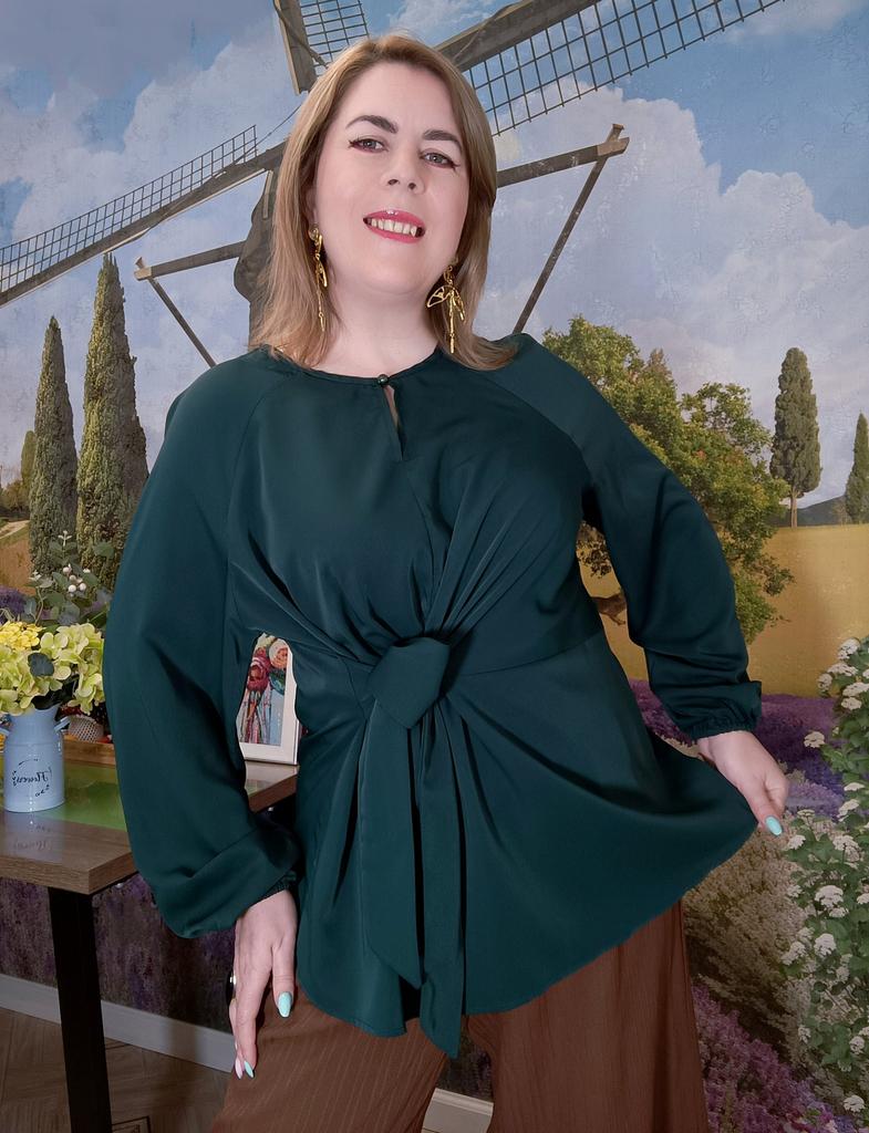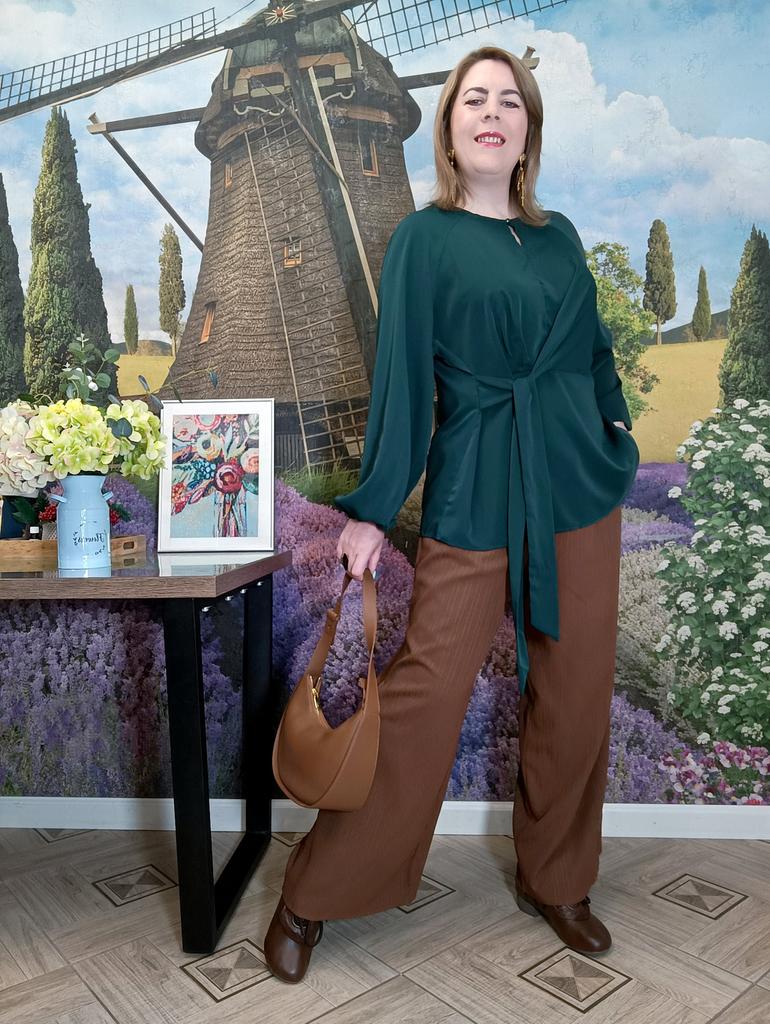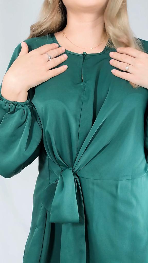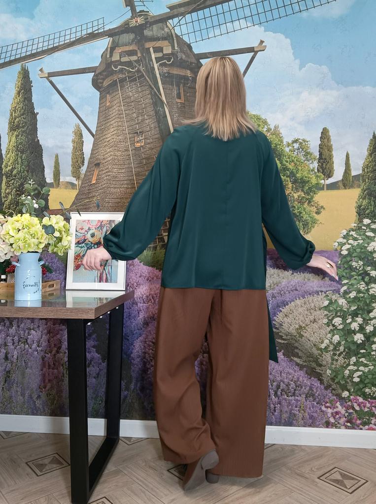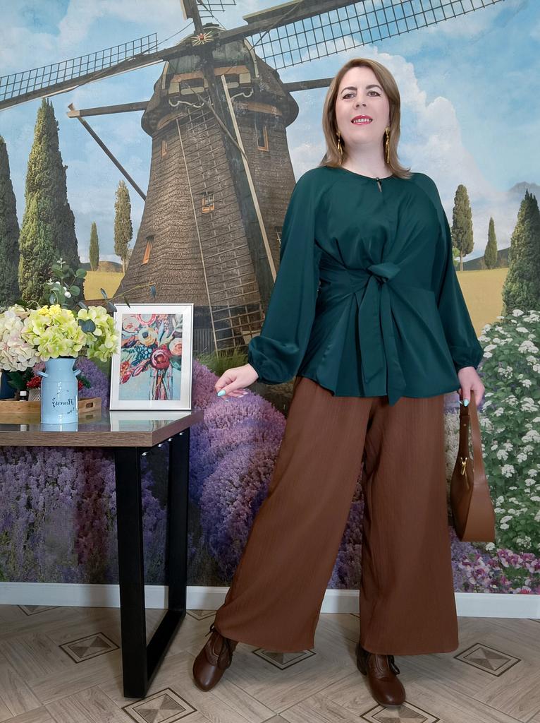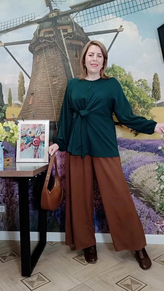 Эта тёмно-зелёная блузка выделяется своим элегантным и в то же время практичным дизайном. Главная особенность — это завязывающийся бант спереди, который не только добавляет изюминку, но и подчёркивает силуэт. 🔸На выбор размеры: L-4XL. На мне XL. - Замеры изделия: Длина - 74 см ОГ - 124 см Длина рукава от горловины - 73 см 🔸Материал с лёгким блеском, что делает блузку идеальной для вечерних выходов. 🔸Рукава длинные, свободные, с расклешением к низу, что создаёт летящий и женственный образ. 🔸Крой свободный, но при этом сфокусированный на талии благодаря банту, что позволяет скрыть мелкие недостатки фигуры. 🔸Цвет глубокий тёмно-зелёный, который выглядит благородно и хорошо сочетается с чёрными брюками или юбкой. 🔸В целом, эта блузка отлично подойдёт для офиса, романтического ужина или любого другого мероприятия, где требуется одновременно комфортный и стильный наряд. Рекомендую 👍 Ставлю ⭐ ⭐ ⭐ ⭐ ⭐ Спасибо продавцу ❤️ и Joom ❤️
