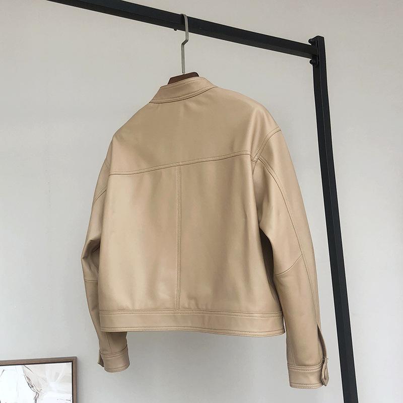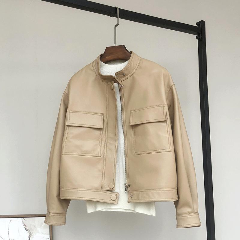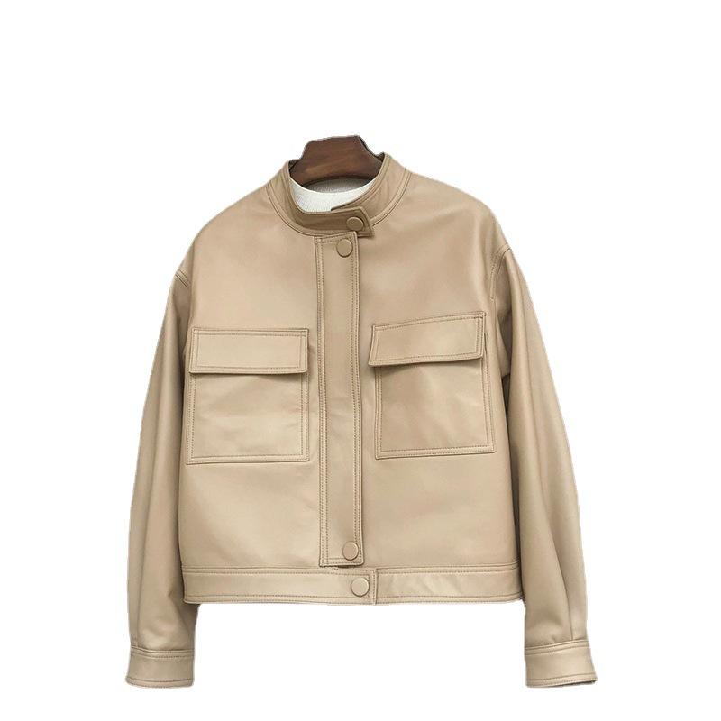 Весна и осень Новая овчина натуральная кожаная куртка женская короткая модная куртка с воротником-стойкой куртка женская карманная