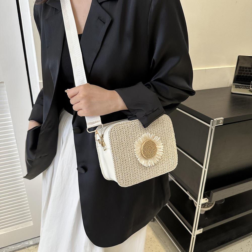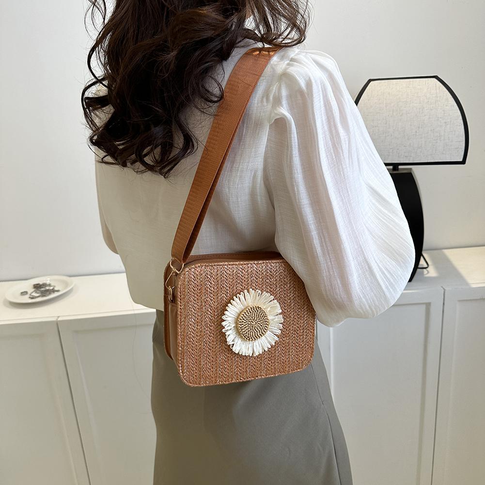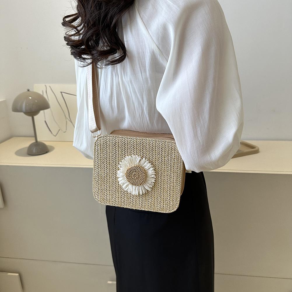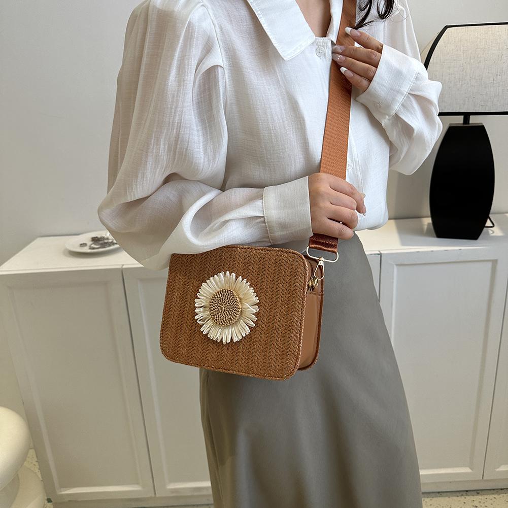 Классические плетеные сумки из ротанговой соломы, модная маленькая квадратная сумка Sun Flower, женская плетеная сумка через плечо