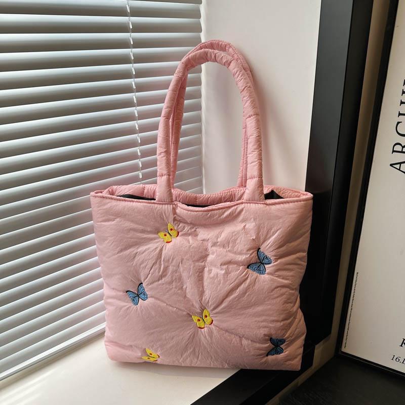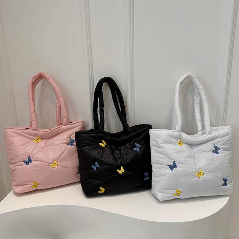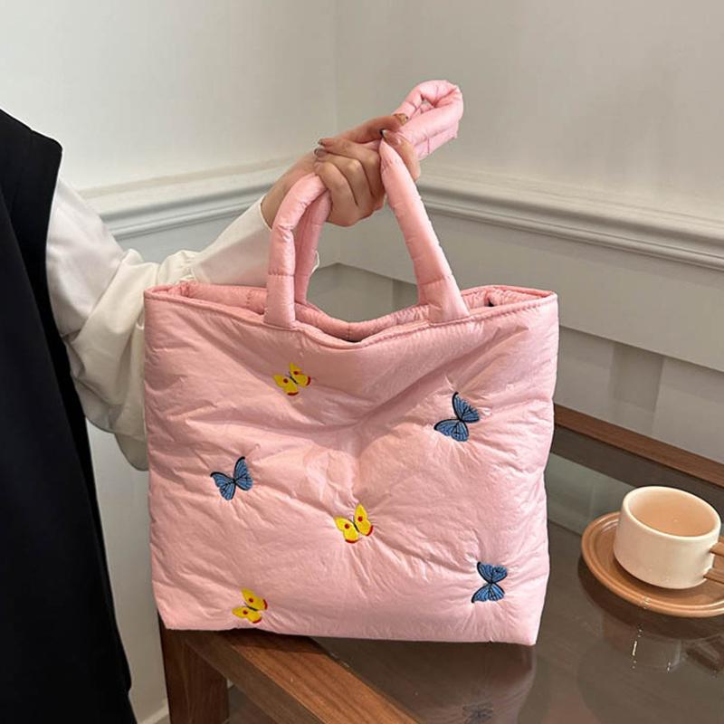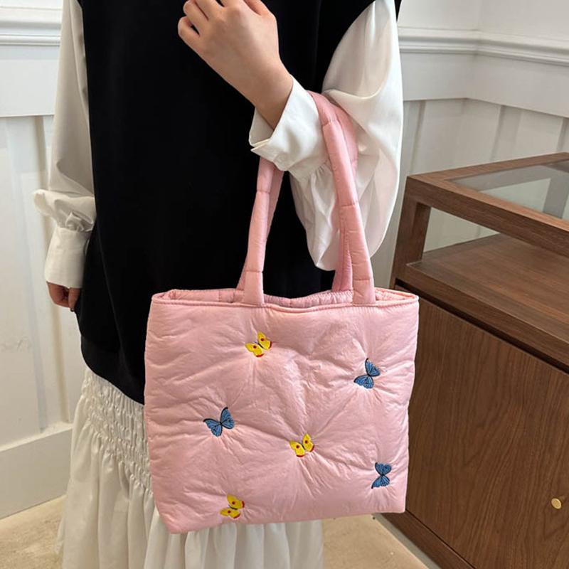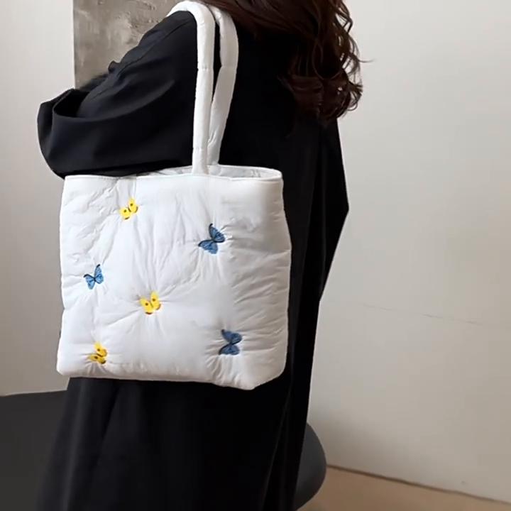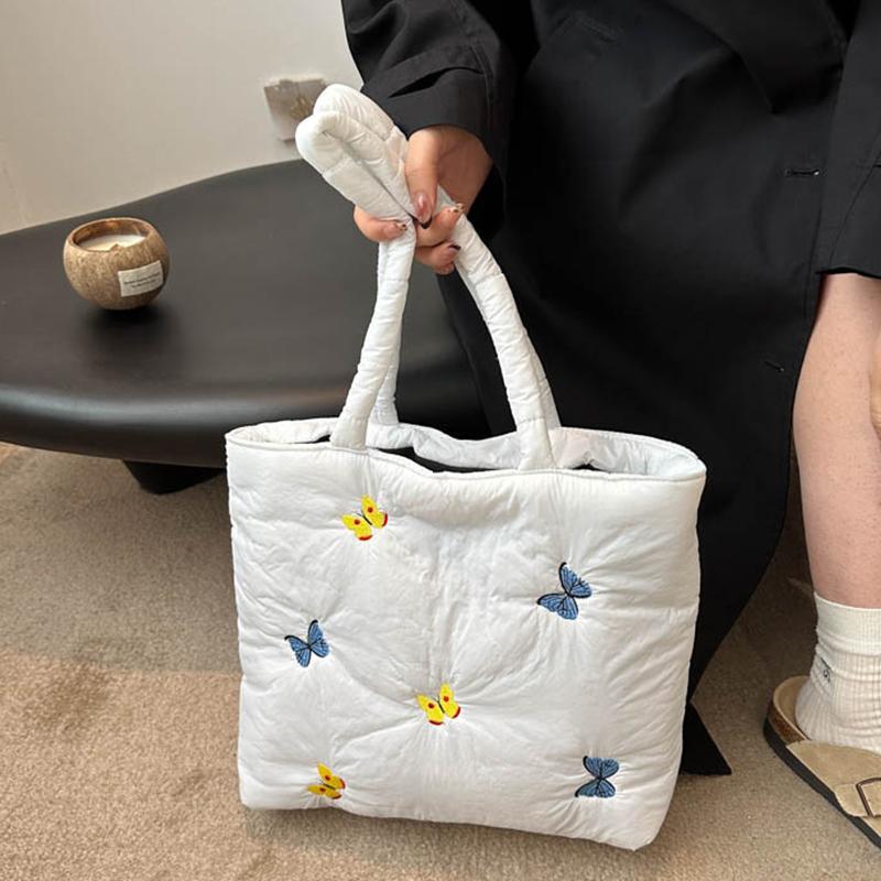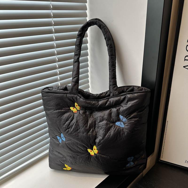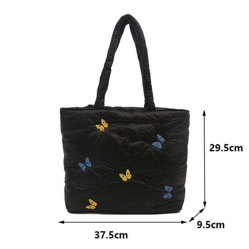 Мягкая стеганая женская сумка-тоут, сумка через плечо большой емкости, женская сумка через плечо с вышивкой в виде бабочки