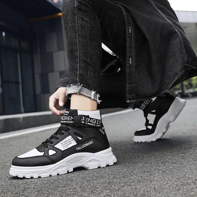 Мужские ботинки, новые повседневные модные мужские ботильоны, ретро-спортивные ботинки на платформе, увеличивающие высоту щиколотки, мужские ботинки на шнуровке для мужчин