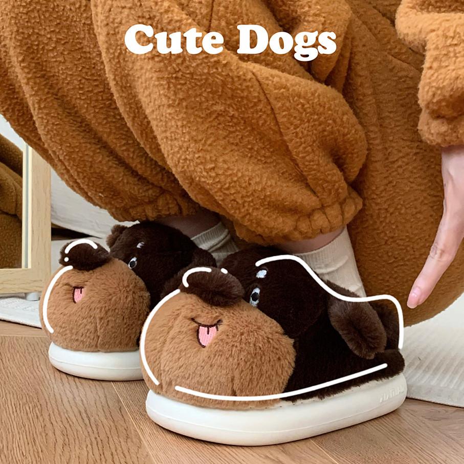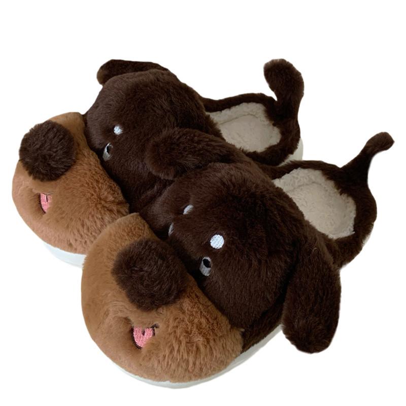 Тапочки с изображением мультяшной собаки для женщин, зимние домашние теплые туфли из искусственного меха для пар, шлепанцы с милыми животными, плюшевые мужские тапочки на платформе для дома