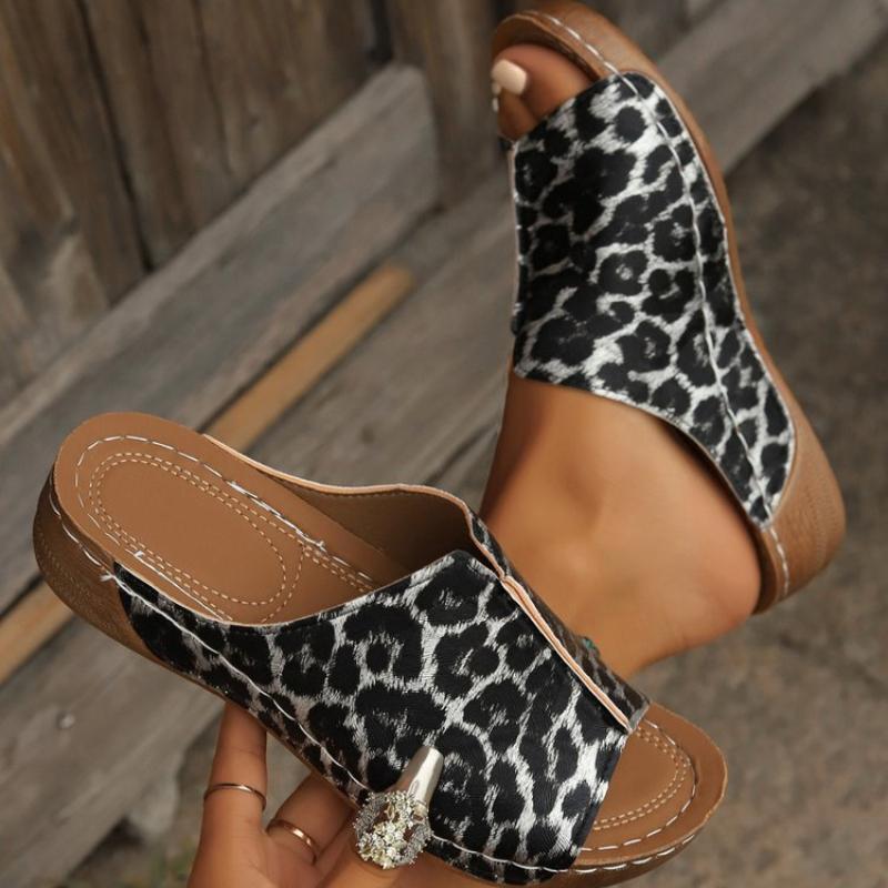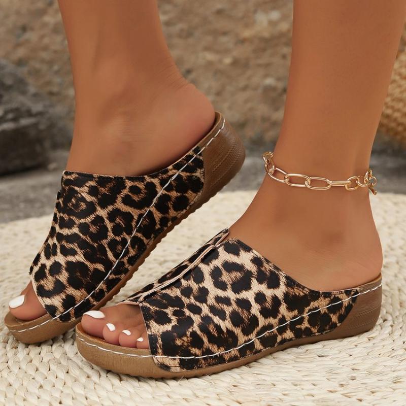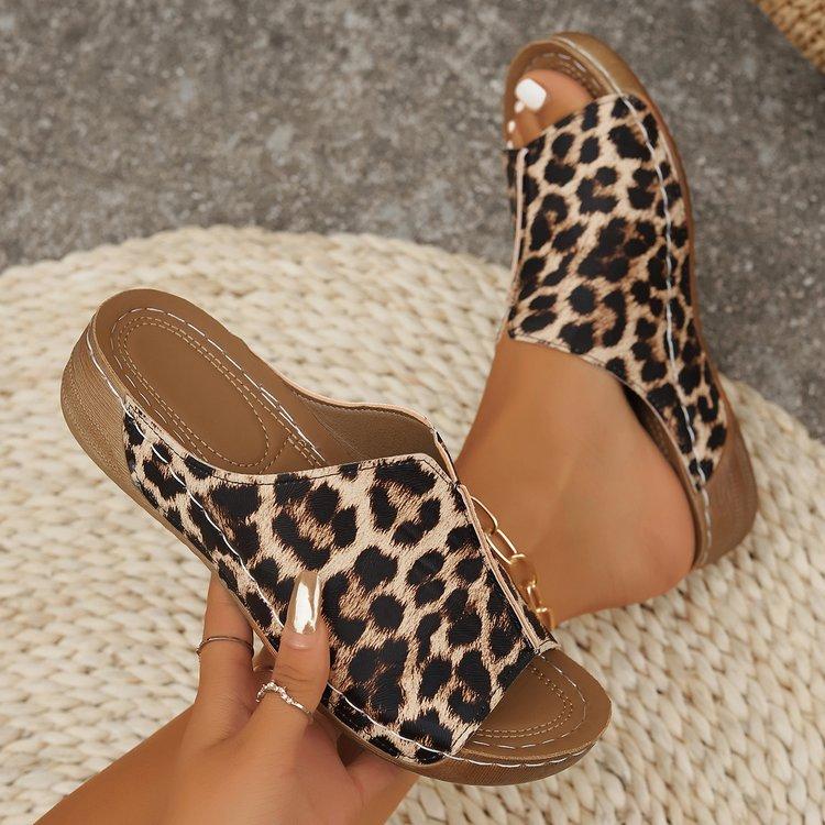 Женские леопардовые тапочки на платформе, новые летние повседневные сандалии с мягкой подошвой, женские легкие нескользящие пляжные сланцы, большие размеры 43