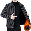 Мужская куртка с отложным воротником и длинным рукавом в полоску, однобортный, толстый, теплый кардиган, свободный, плюс размер, средней длины, повседневное мужское пальто в деловом стиле