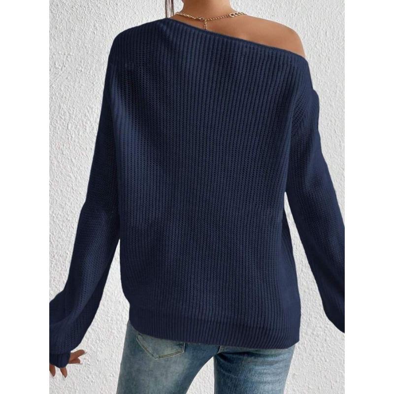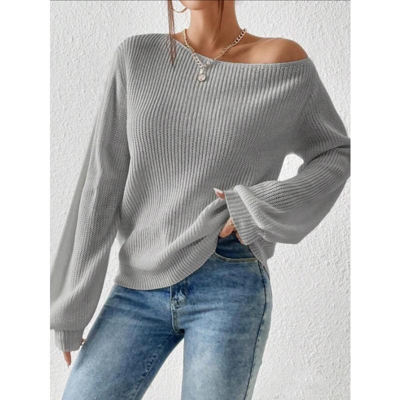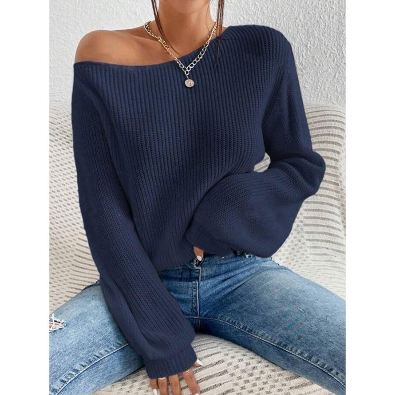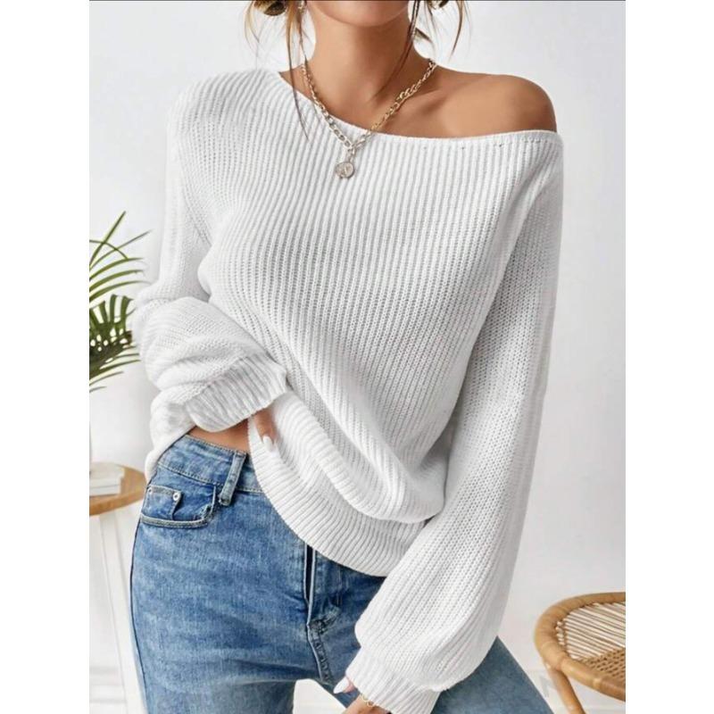 Женский свитер для поездок на работу в осенне-зимнем стиле с открытыми плечами, однотонный, свободный, повседневный и универсальный свитер с воротником-стойкой