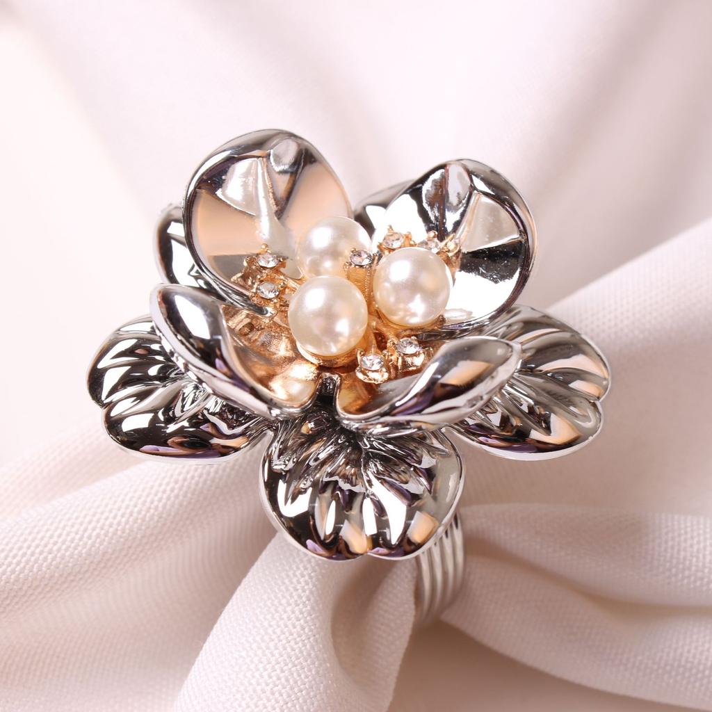 12 шт./лот Новое кольцо для салфеток Жемчужный цветок Салфетка Кнопка гальванизированная роза Цветок Ужин Кольцо — купить товар онлайн с бесплатной доставкой до всему миру!