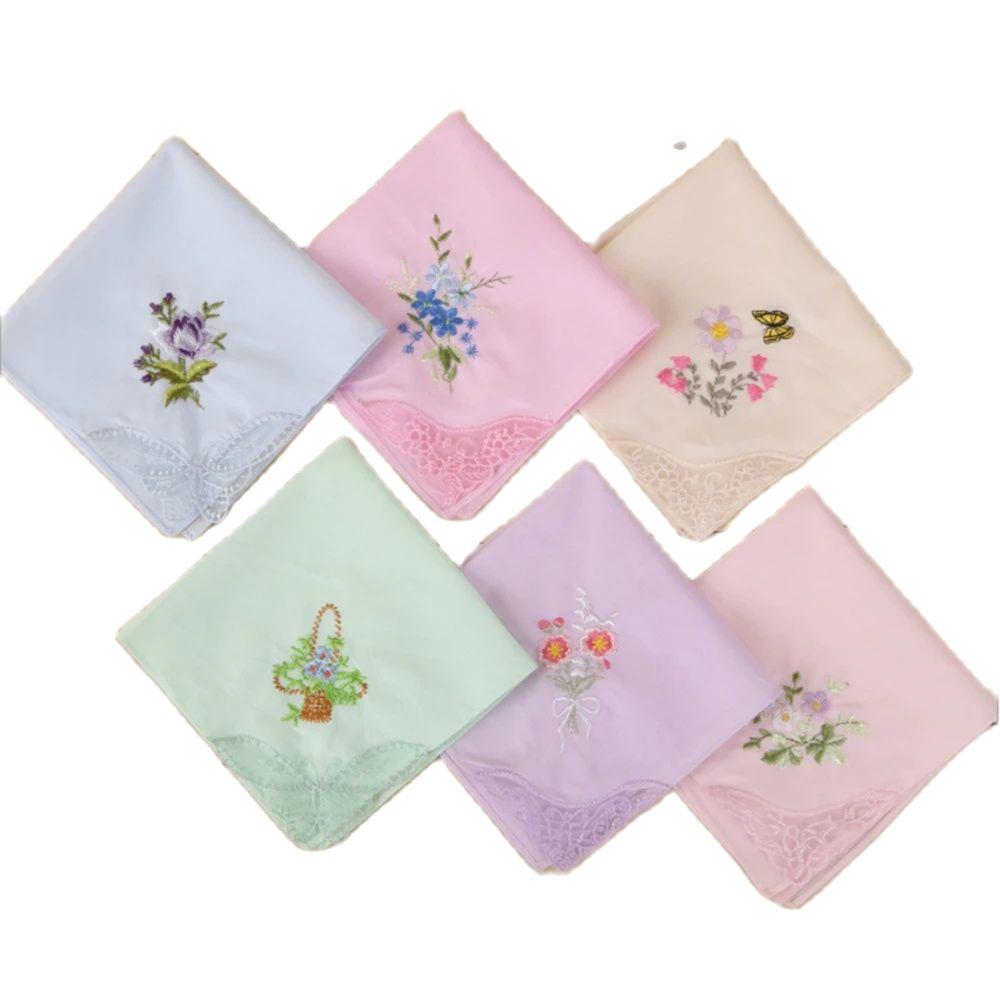 SHSEJA-Вышитый носовой платок для женщин, 100% хлопок, кружевная вышивка, полотенце, партия 12 шт. — купить товар онлайн с бесплатной доставкой по всему миру!