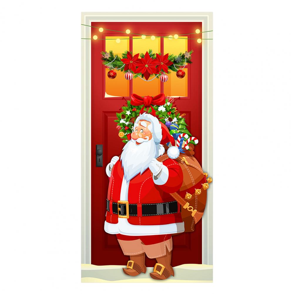 Декор двери в виде снежинки, фон для рождественской вечеринки, праздничный баннер на дверь в виде Санта-Клауса для рождественских и новогодних праздников для семьи