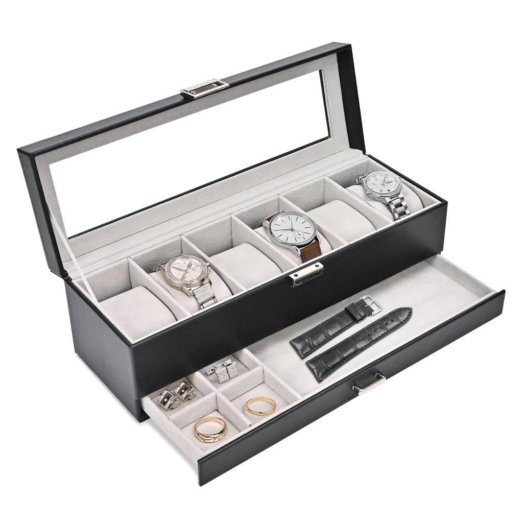 Футляр для часов Mocamoro на 6 часов, двухъярусный футляр для часов, коллекция мужских часов класса люкс, прозрачный стеклянный дисплей сверху, подарок