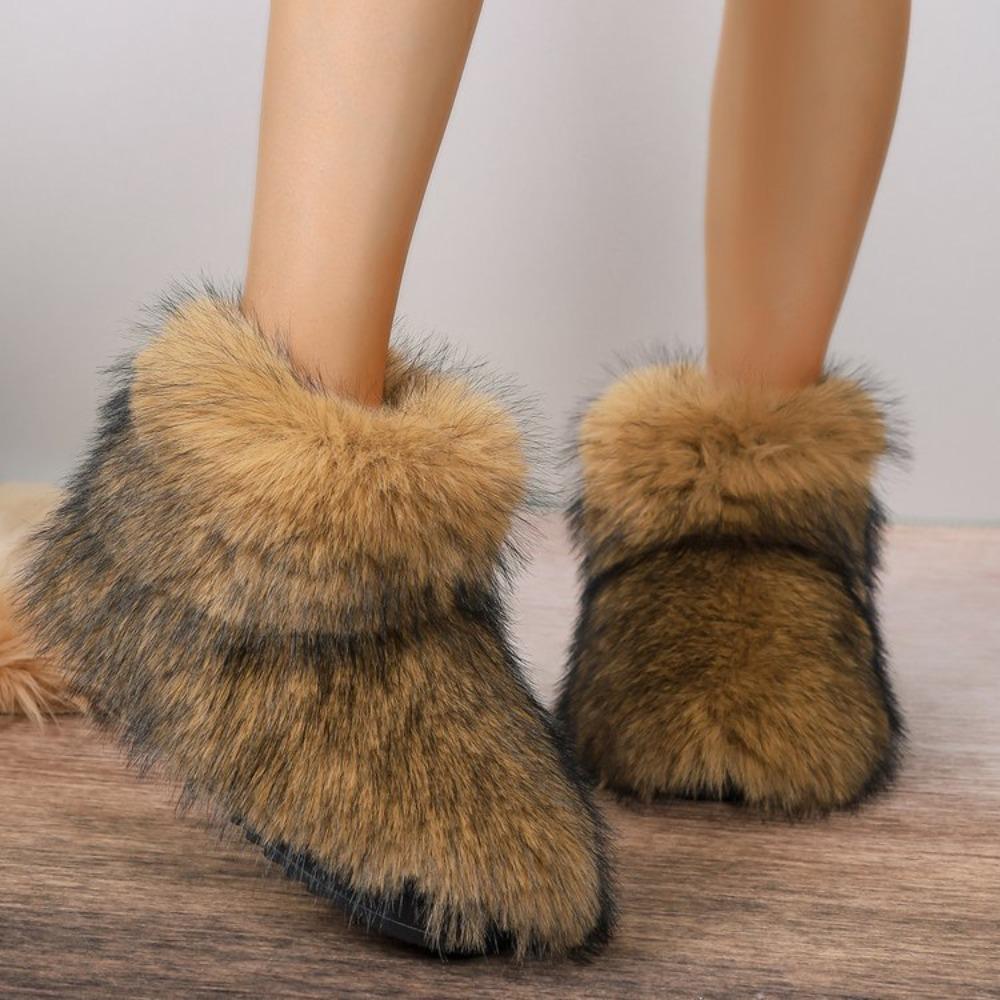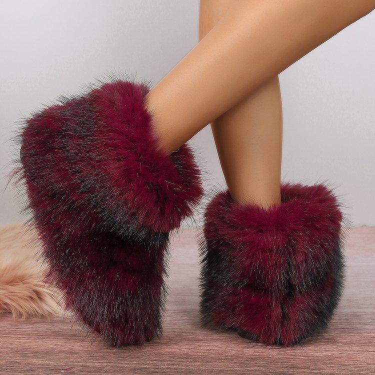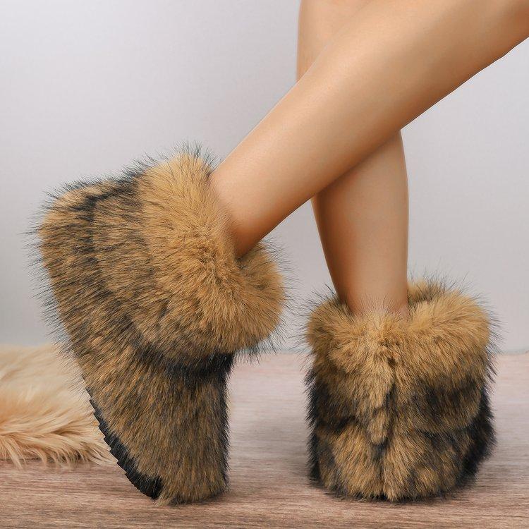 Модные женские зимние сапоги для отдыха на открытом воздухе, роскошные меховые сапоги из искусственного меха лисы, новые модные сапоги WomanPlush Warm Platform Shoes Bottes