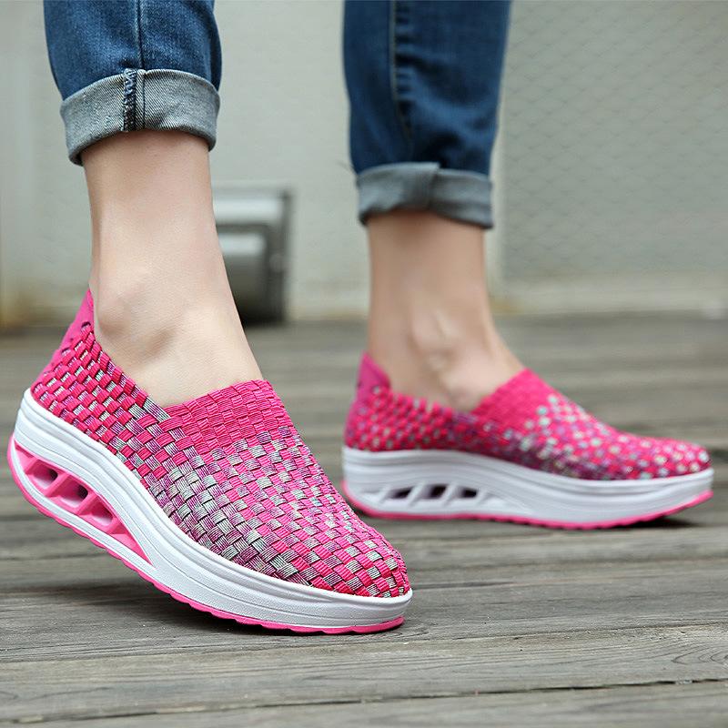 Модные женские кроссовки на платформе, разноцветные, плетеные, на танкетке, вулканизированные, весна-осень, повседневные, плетеные, дышащие, кроссовки, теннис