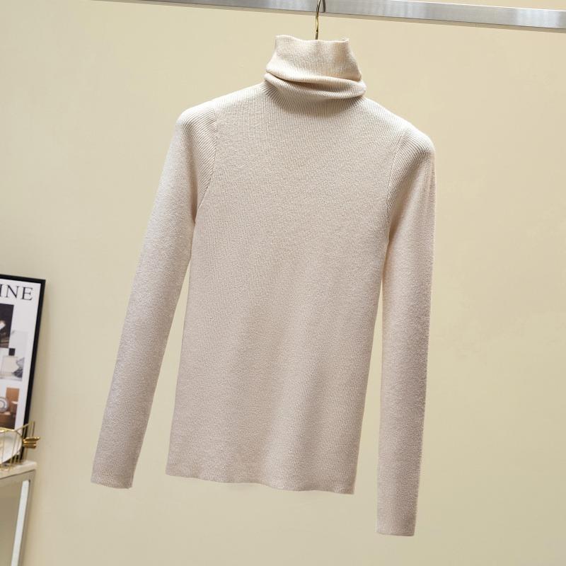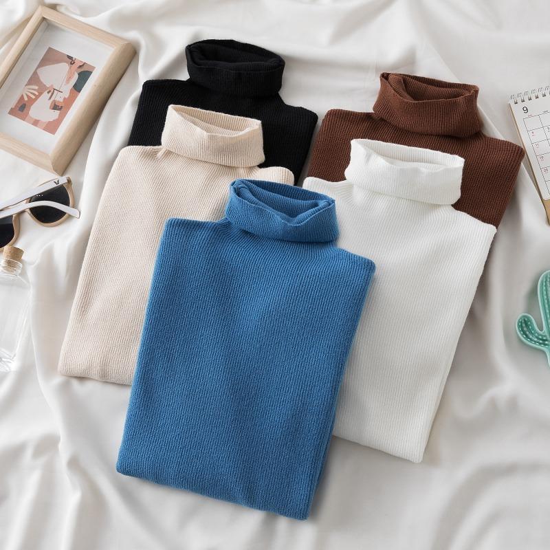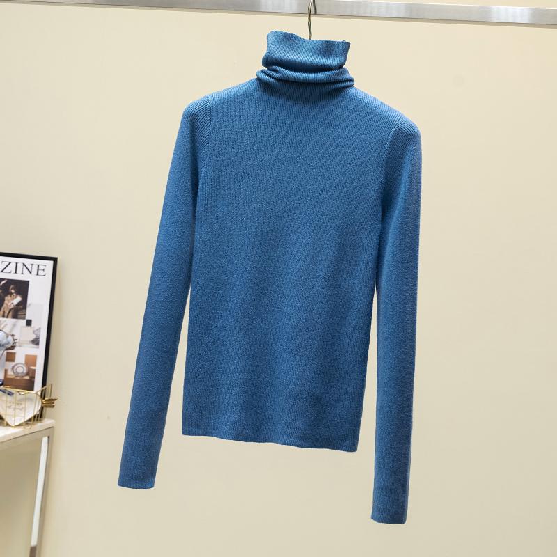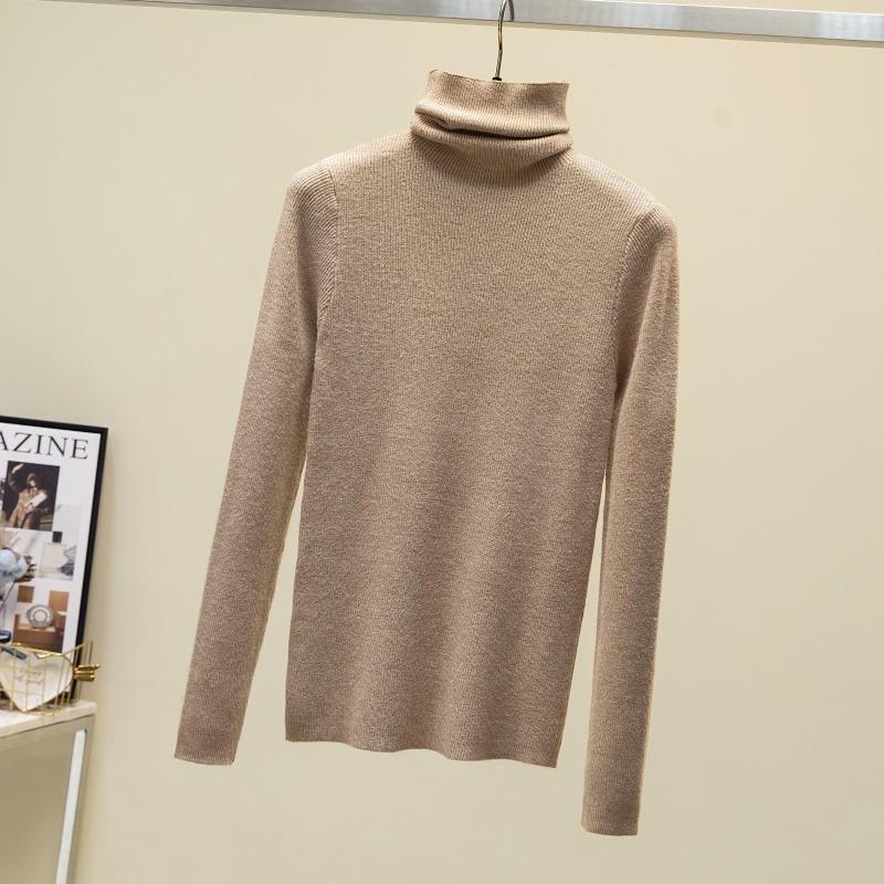 Осень и зима Новый свитер с высоким воротом Женский пуловер Длинный рукав Базовые топы Приталенный трикотажный низ Рубашка Короткие свитера