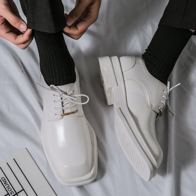 Модные новые мужские туфли с квадратным носком из лакированной черной и белой кожи, мужские туфли на платформе, винтажные туфли на толстом каблуке для вечеринок, мужские официальные туфли — купить товар онлайн с бесплатной доставкой по всему миру!