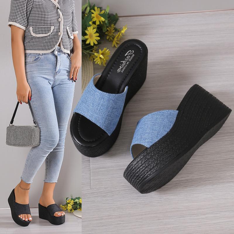 Модные женские пляжные тапочки на платформе, высокие каблуки, босоножки на танкетке, летняя обувь 2024 года, новые женские туфли, толстые шлепанцы, сексуальные туфли-лодочки, модные шлепанцы