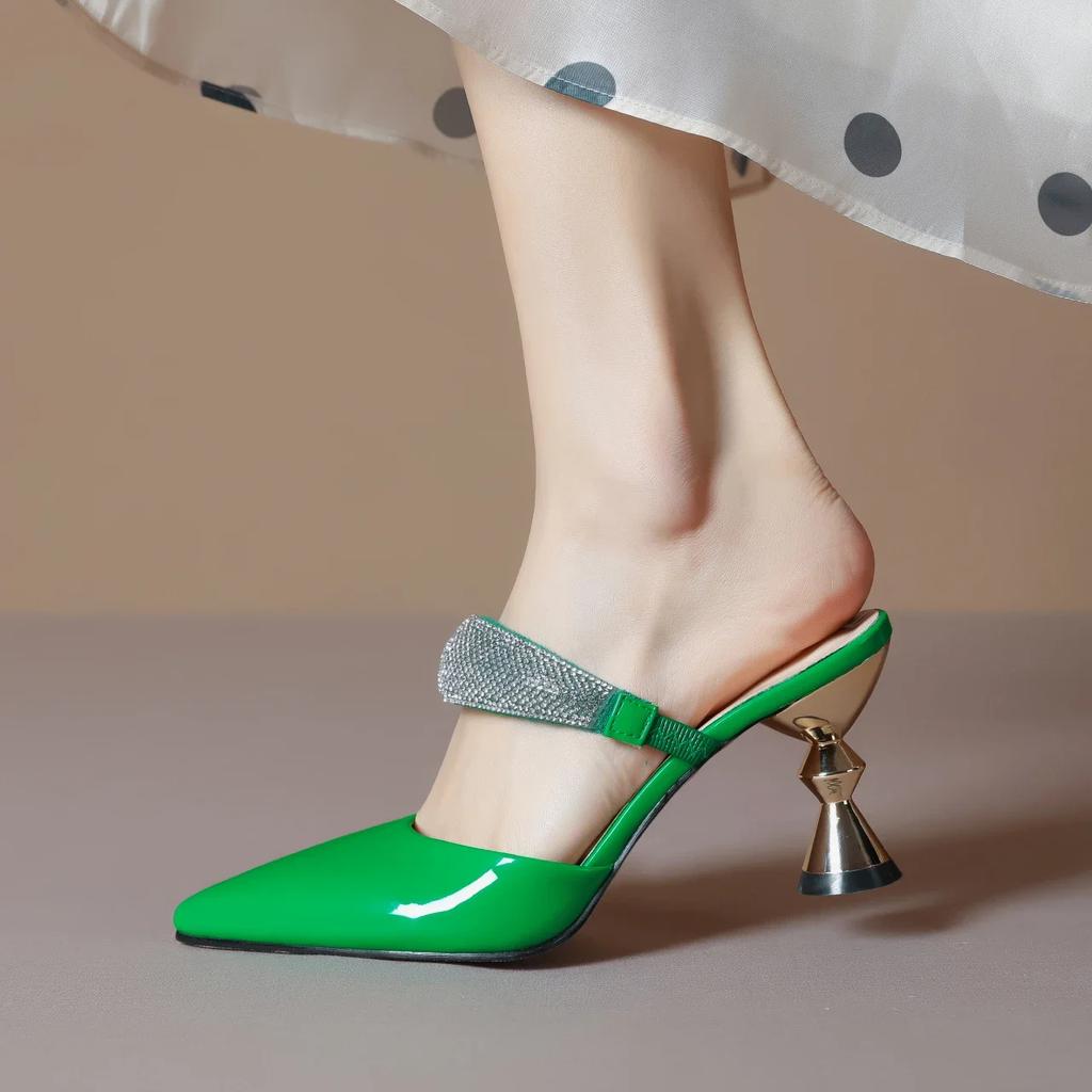 Модные босоножки для женщин 2024 года, новые летние элегантные туфли-мюли с острым носком на высоком каблуке в необычном стиле, модные женские тапочки с закрытым носком