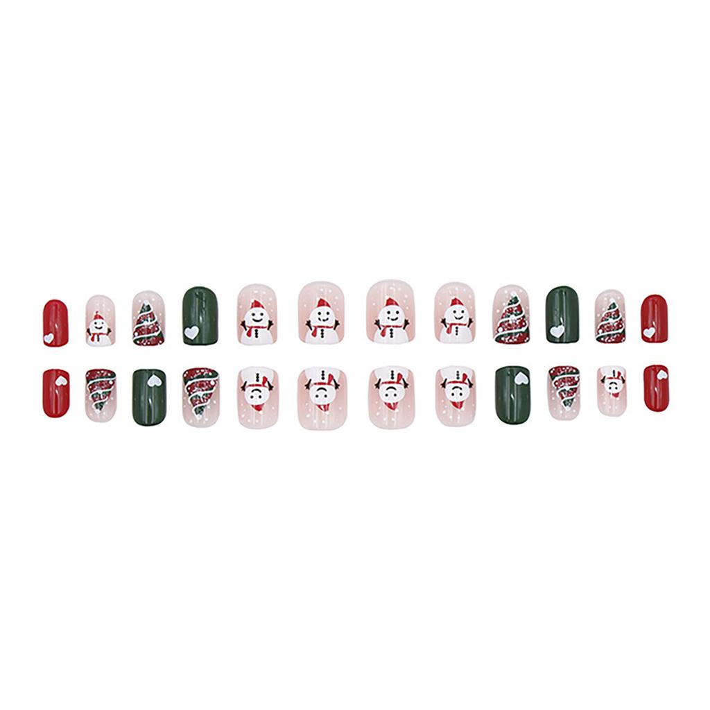 Рождественские накладные ногти короткие накладные ногти квадратные красные полностью покрывающие клеем ногти рождественские ногти с милым дизайном очень короткие с 2 мл клея