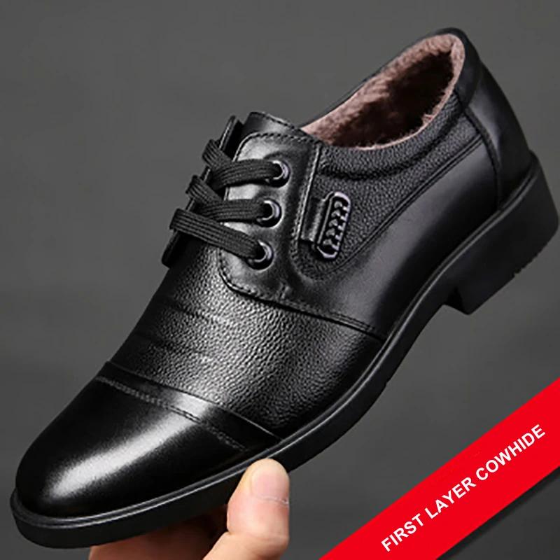 Модная зимняя обувь для мужчин из натуральной кожи, повседневная обувь, деловая обувь из кашемира и хлопка, теплая обувь с мехом или без него, кожаные кроссовки