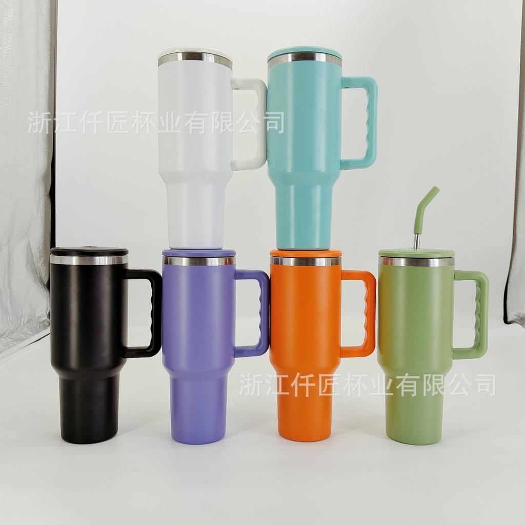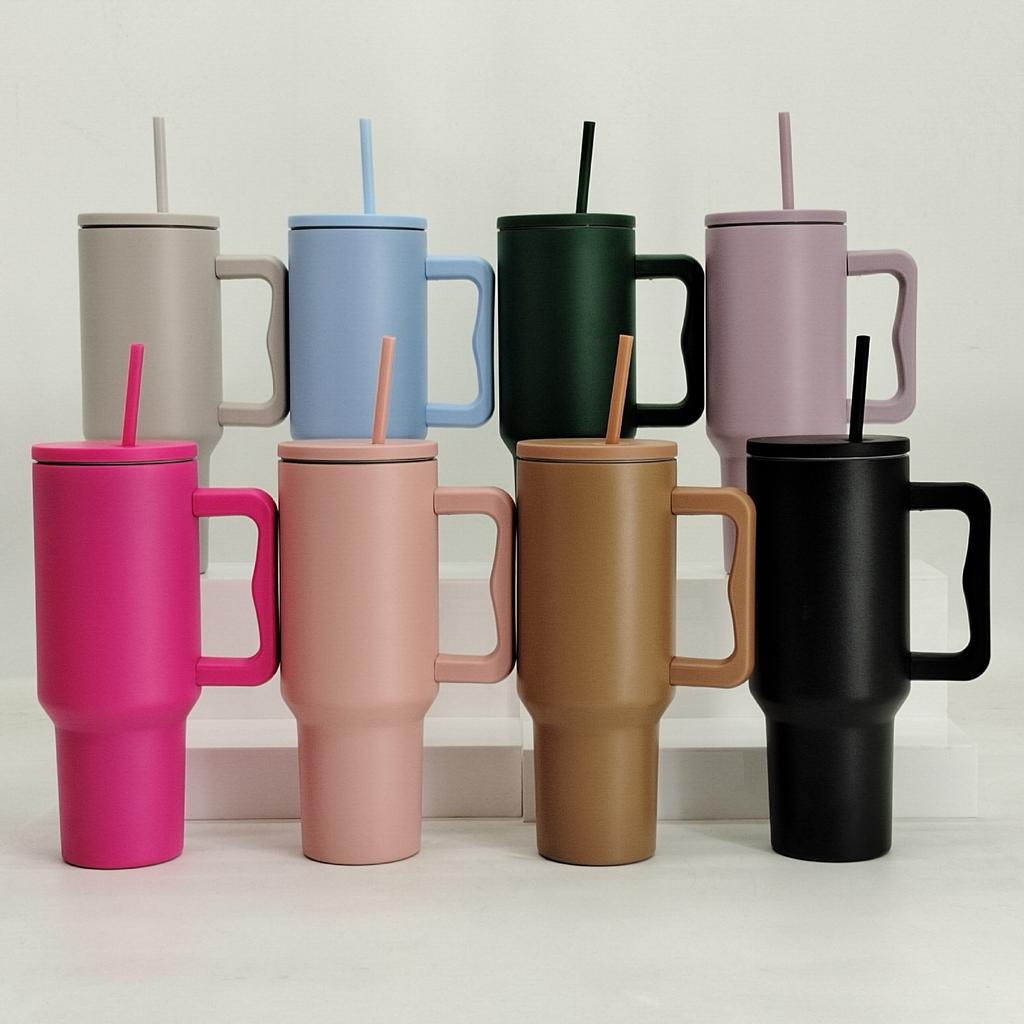 Индивидуальный вакуумный термостакан с двойными стенками 40 унций, кружка из нержавеющей стали 40 унций, металлические термостаканы с ручкой