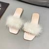 Модные однотонные тапочки из перьев в корейском стиле 2024 года, новые модные тапочки с мягкой подошвой, износостойкие, нескользящие, женские летние тапочки