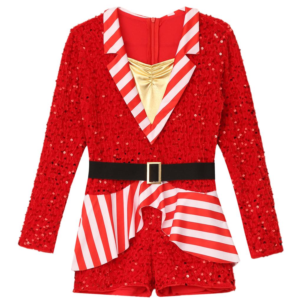 Дети Девочки конфета тростник полосатый блестки балетный танец шорты комбинезон платье рождественский костюм моден джаз латиноамериканские выступления танцевальная одежда
