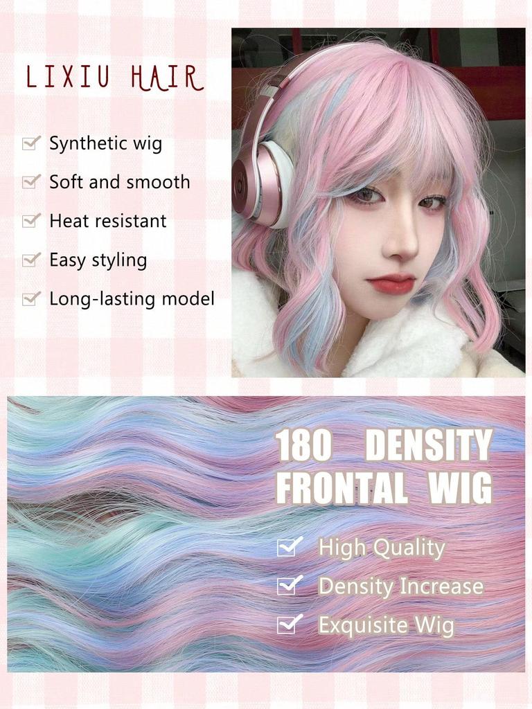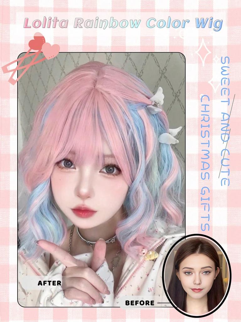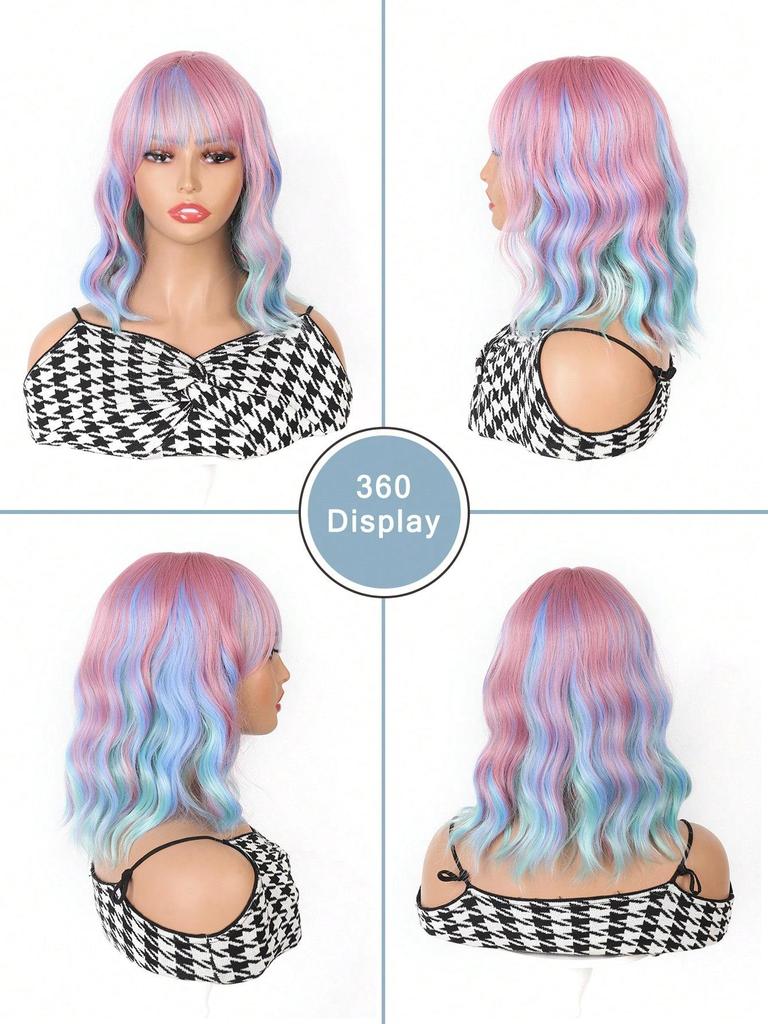 16-дюймовый средне-длинный радужный волнистый парик с челкой для девочек, термостойкие синтетические парики для музыкальных фестивалей, вечеринок, рождественских подарков