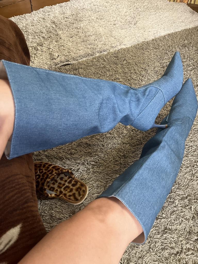 Модные женские сапоги на высоком каблуке, ретро-сапоги с острым носком, джинсовые рыцарские сапоги в стиле вестерн, женские туфли на молнии, модные сапоги на высоком каблуке до колена 2024 — купить товар онлайн с бесплатной доставкой по всему миру!