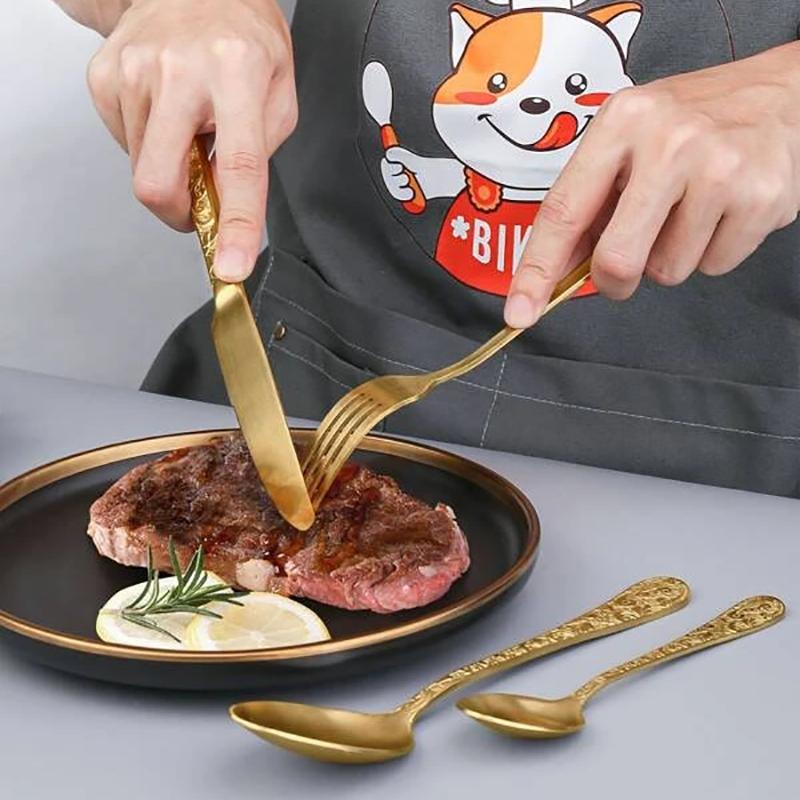 Изготовлен из высококачественной нержавеющей стали марки 304, с более высокой устойчивостью к ржавчине, долговечен, не царапается и не ломается. Уникальная посуда, каждый предмет посуды имеет уникальный узор, вырезанный на ручке.. Красивый узор делает это устройство роскошным и элегантным.. Современная посуда сделает ваш ежедневный прием пищи особенным. Посуда подойдет для семейных торжеств, баров, ресторанов, официальных ужинов и банкетов.. Это также отличный выбор для подарка семье и друзьям. Легко использовать и чистить - можно мыть в посудомоечной машине.; Многоразовый, прочный для ежедневного использования. Просто вымойте его с помощью кухонного моющего средства и высушите. Технические характеристики: