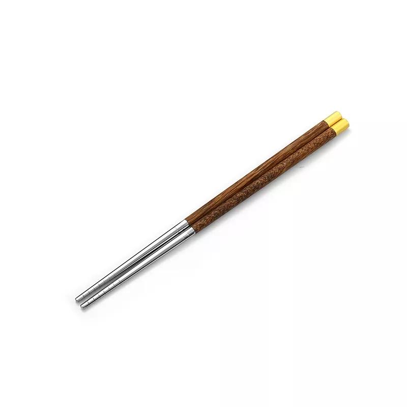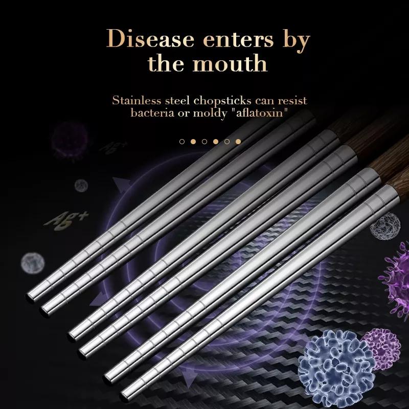Палочки для еды с деревянной ручкой, палочки для еды из нержавеющей стали, бытовые острые китайские палочки для еды, посуда для суши, набор нескользящих палочек для еды