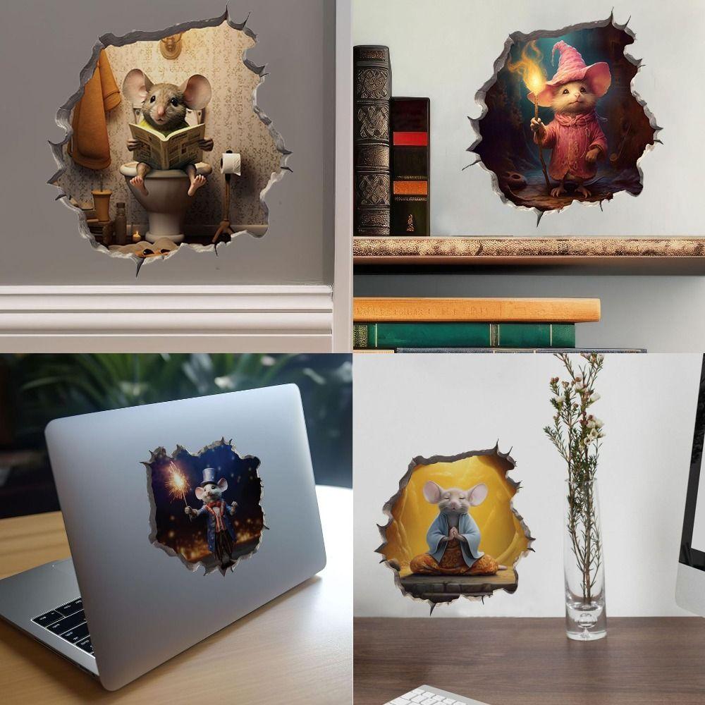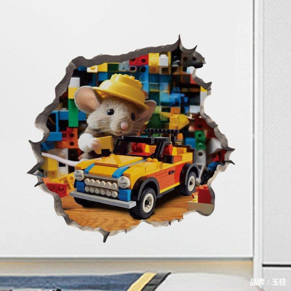 Мультяшные светящиеся наклейки в виде мышиной норы, симпатичная 3D-наклейка с изображением крысы для детской комнаты