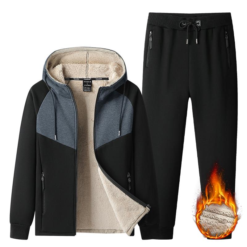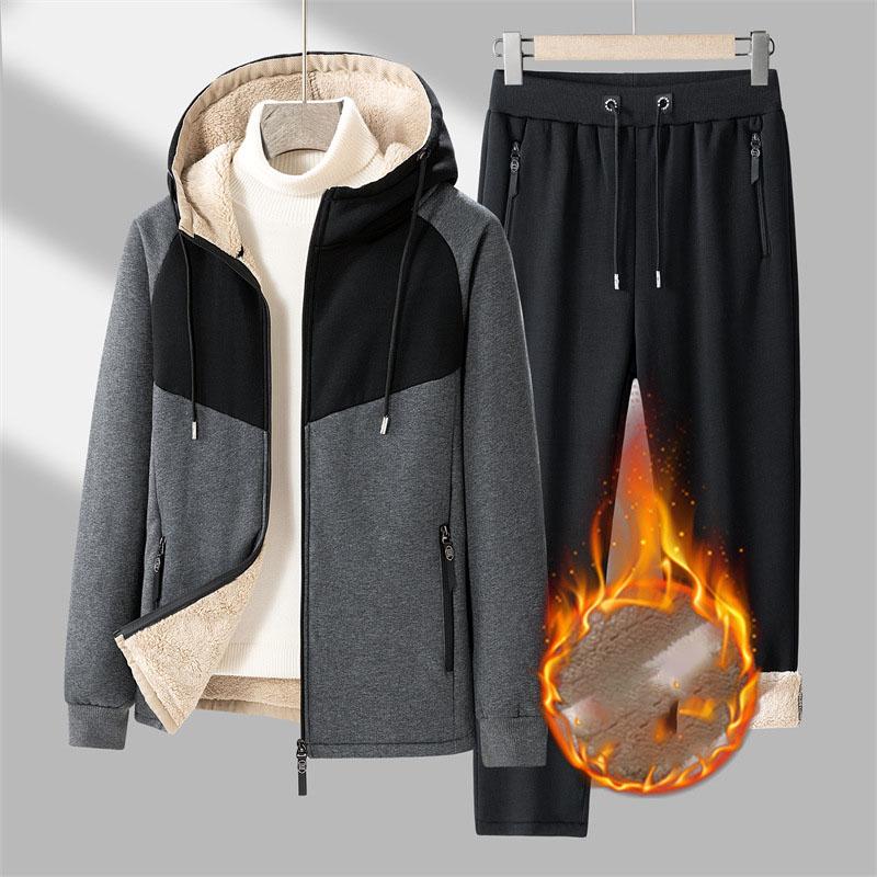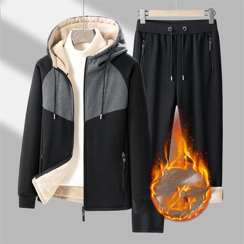 Зимние мужские флисовые повседневные спортивные костюмы с капюшоном, мужские спортивные костюмы для бега на открытом воздухе, мужские толстые спортивные комплекты из двух частей: куртка, пальто, брюки
