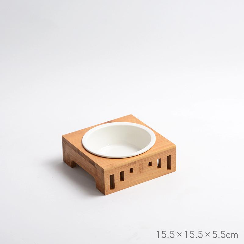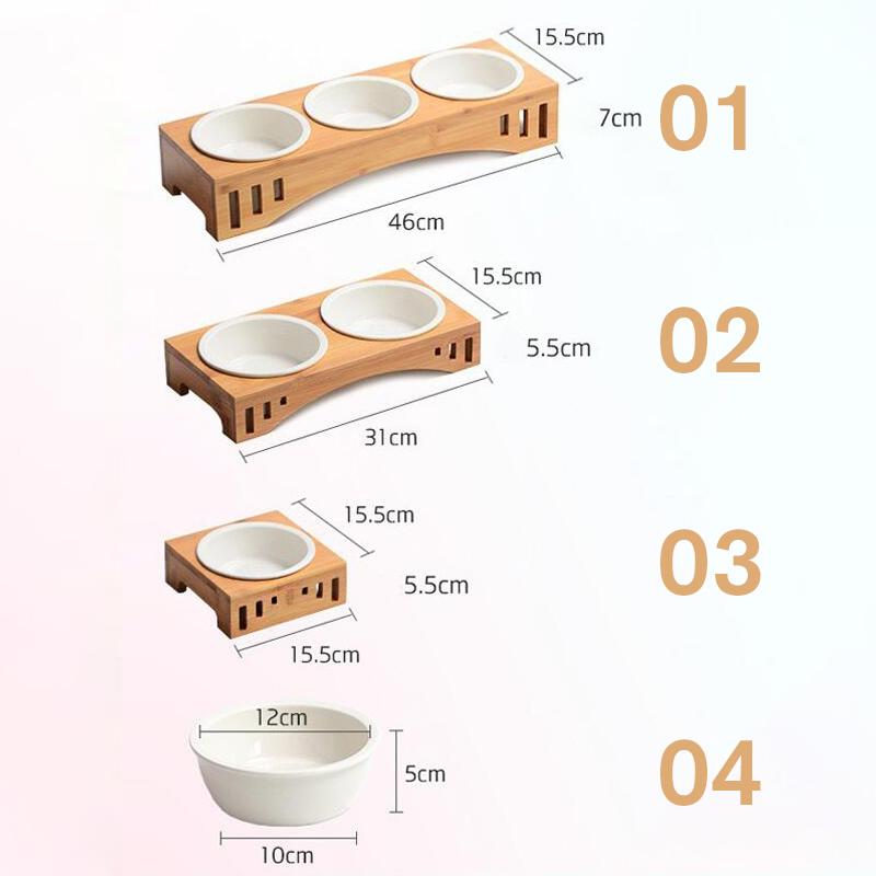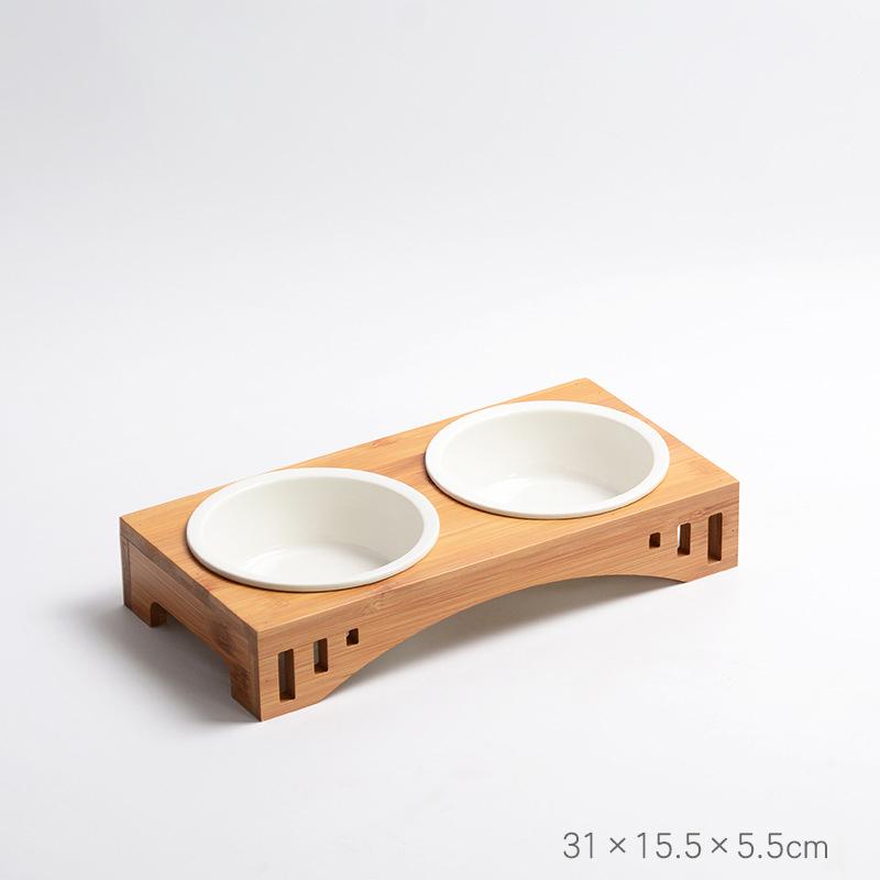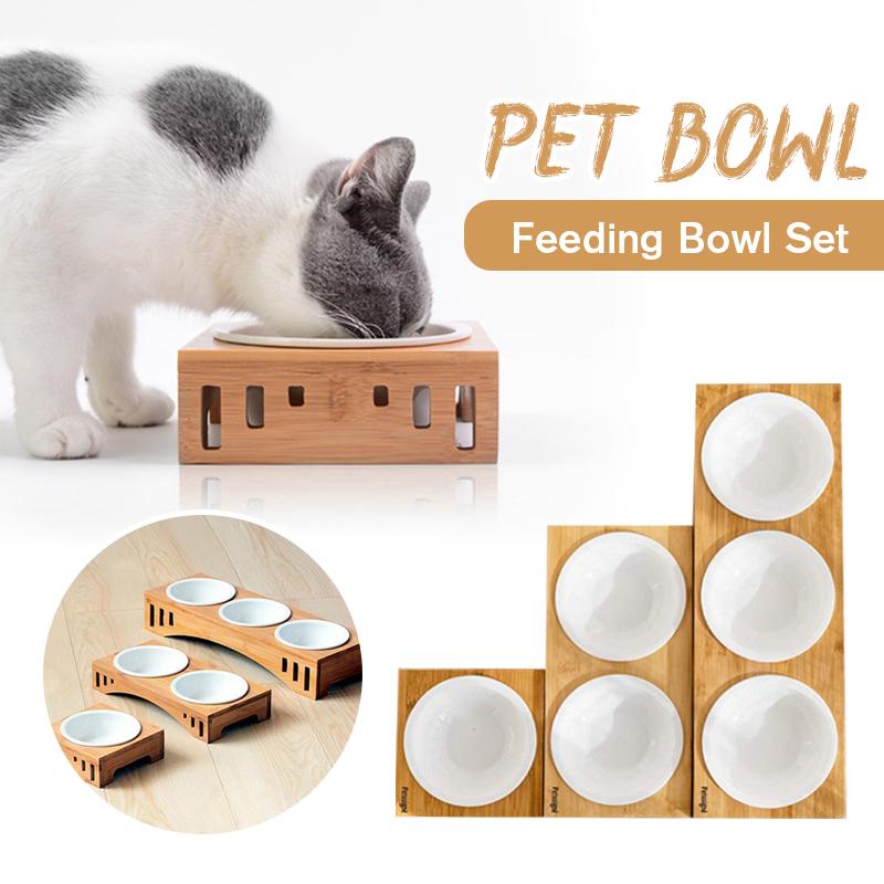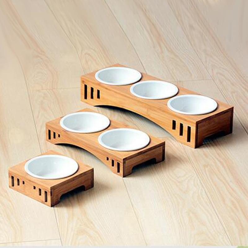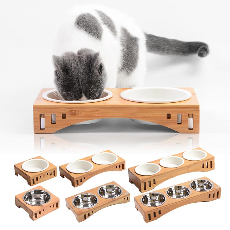 Домашние животные Двойные миски Корм для собак и кошек Поилка Керамическая миска Бамбуковая подставка Кормушки для кошек Маленькие собаки Поилки Товары для животных