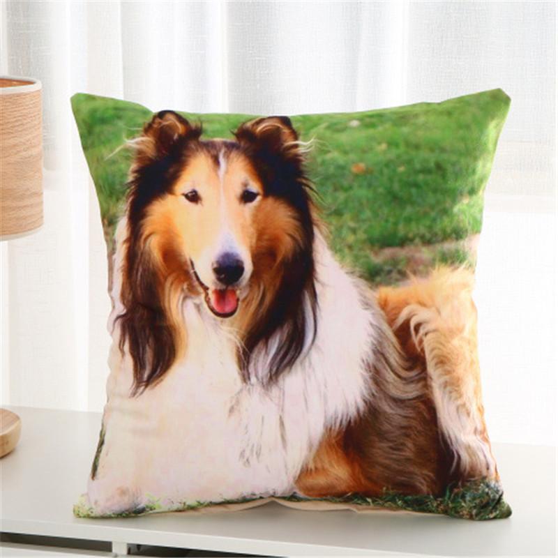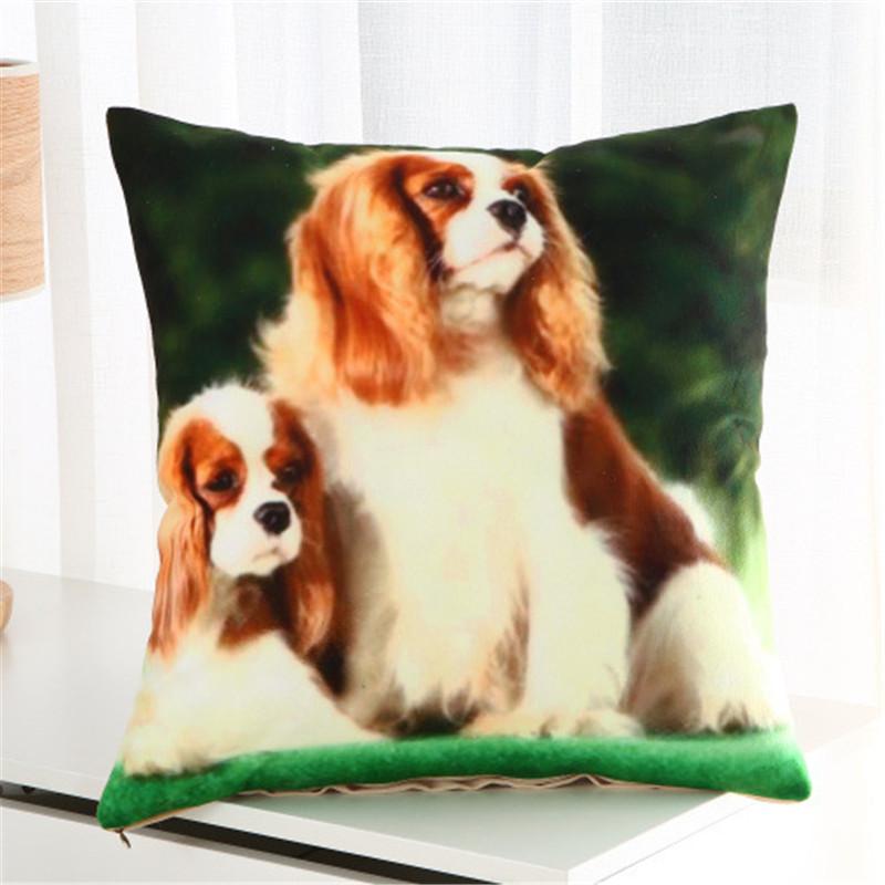 Чехол для подушки 45x45 см с принтом щенка, кошки, собаки, короткий, плюшевый, для гостиной, дивана, рождественское украшение для дома