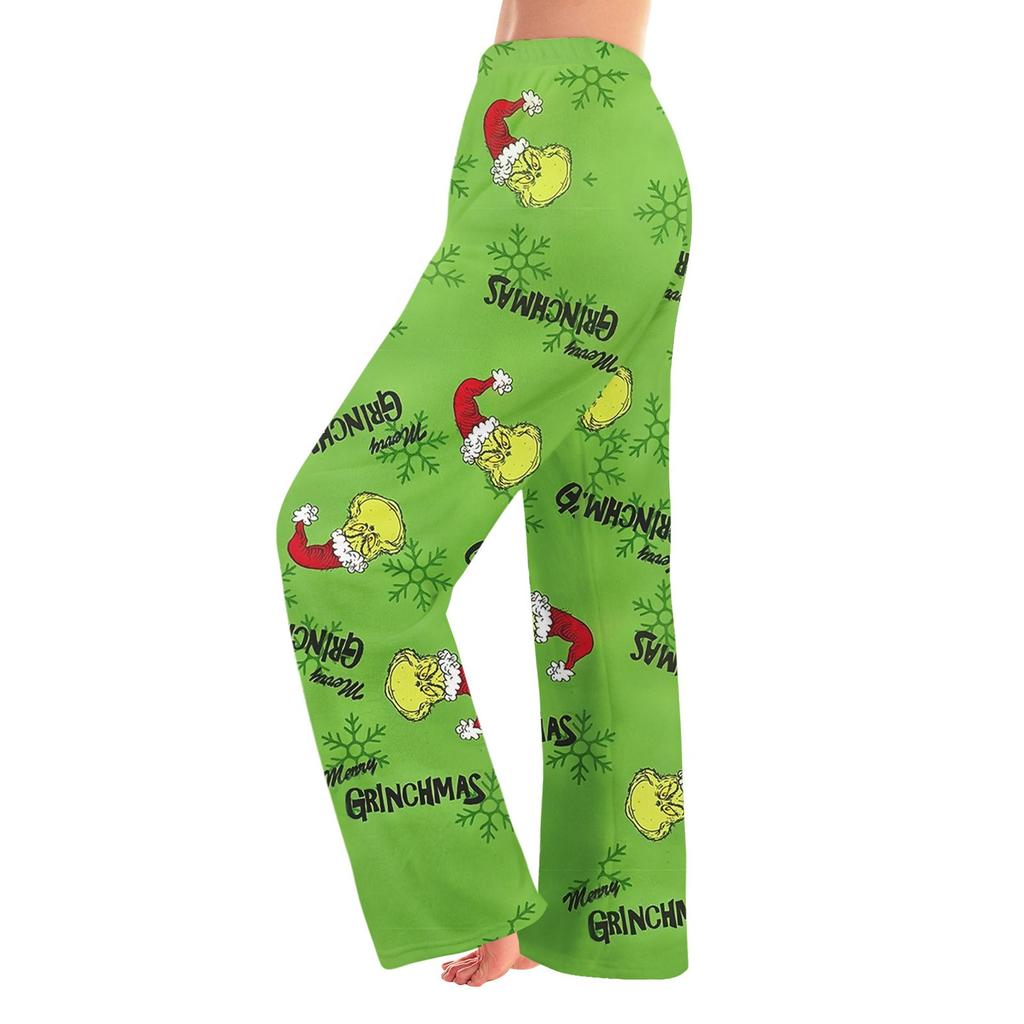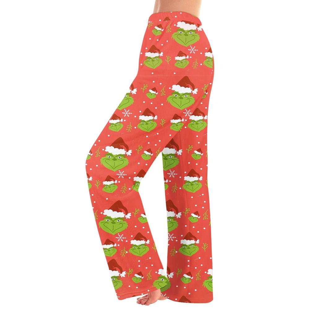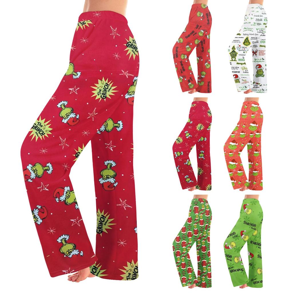 Женские зимние брюки, длинные брюки, фланелевые брюки с рождественским принтом