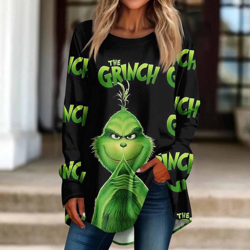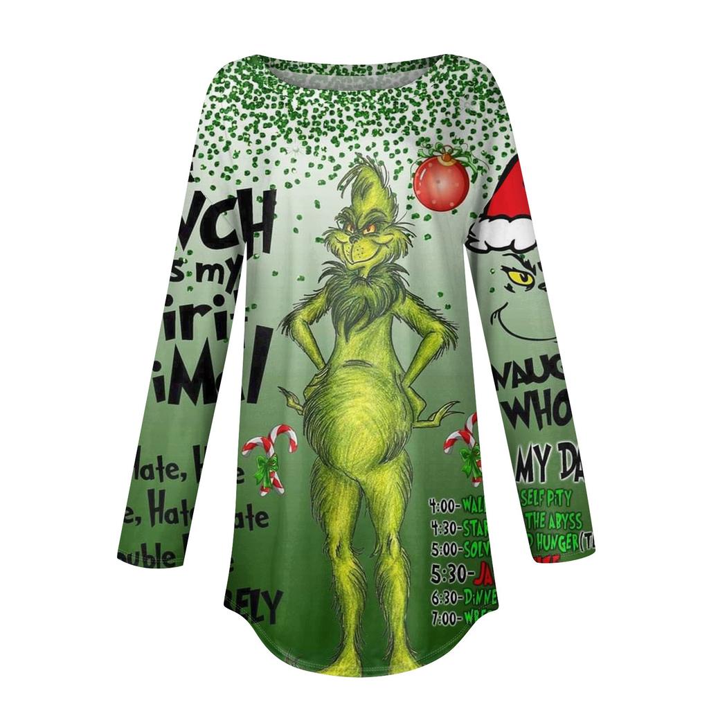 Женская рождественская принтовая рубашка с длинным рукавом, круглый вырез, пуловер, футболка, топ, пуловер