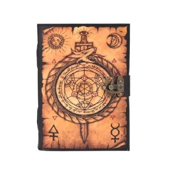 Винтажный замок с застежкой сохранит все ваши ценные записи внутри. Прочный переплет, прошитый вручную, гарантирует, что ни одна бумага не выпадет из вашего блокнота с заклинаниями.