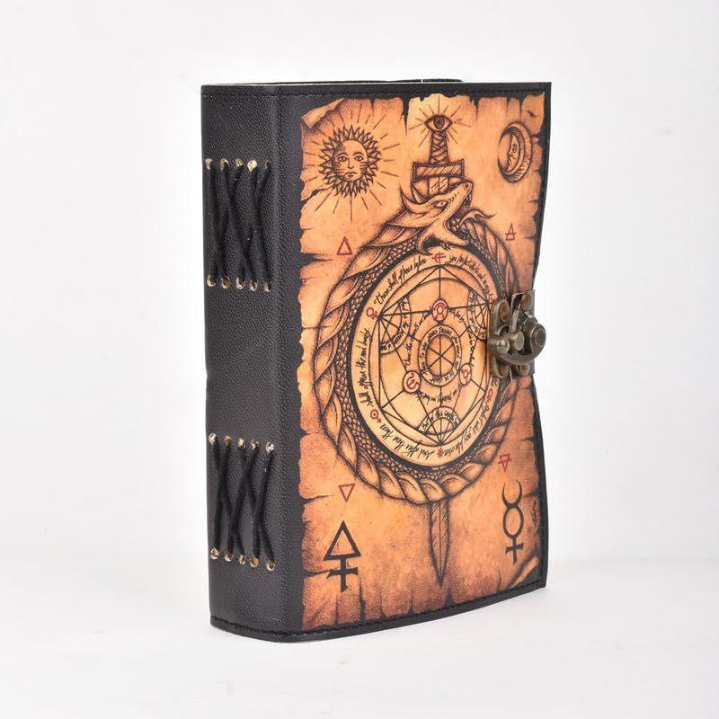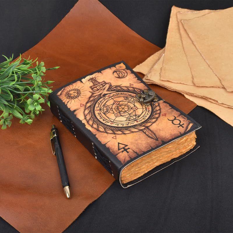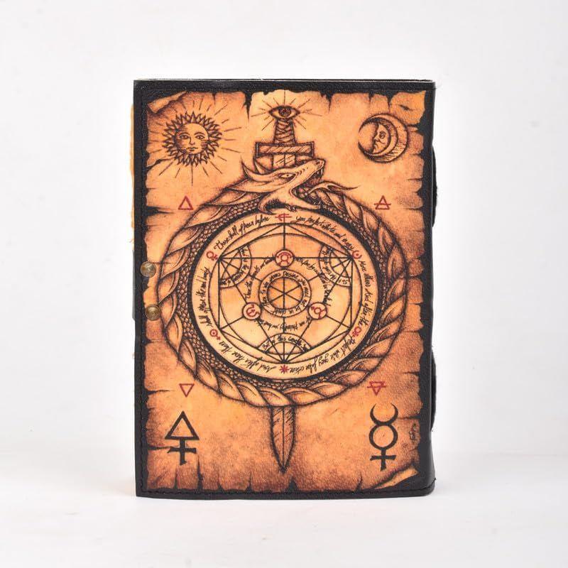 Кожаный журнал, колдовская книга теней, блокнот изготовлен из 200 страниц старинной бумаги, которая выглядит так, будто ее вытащили из истории.. Вы влюбитесь в старинную хлопковую бумагу ручной работы, которая является уникальной для нашего блокнота Vintage Journal.