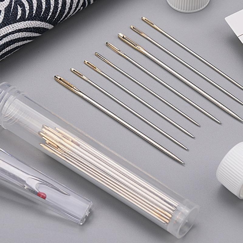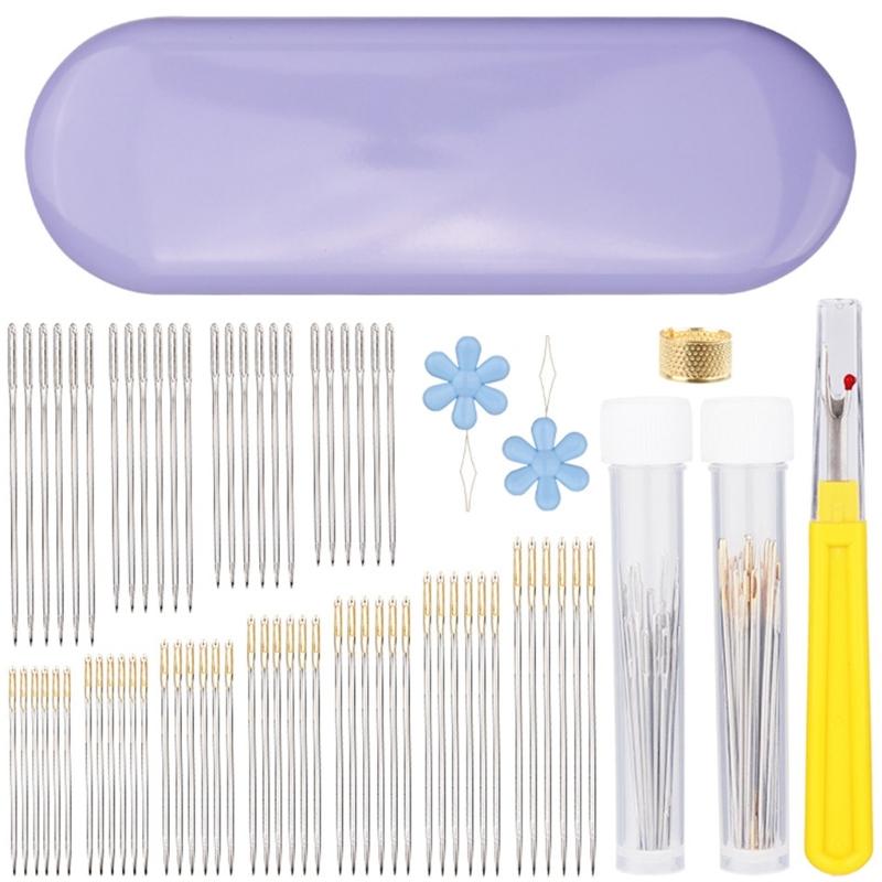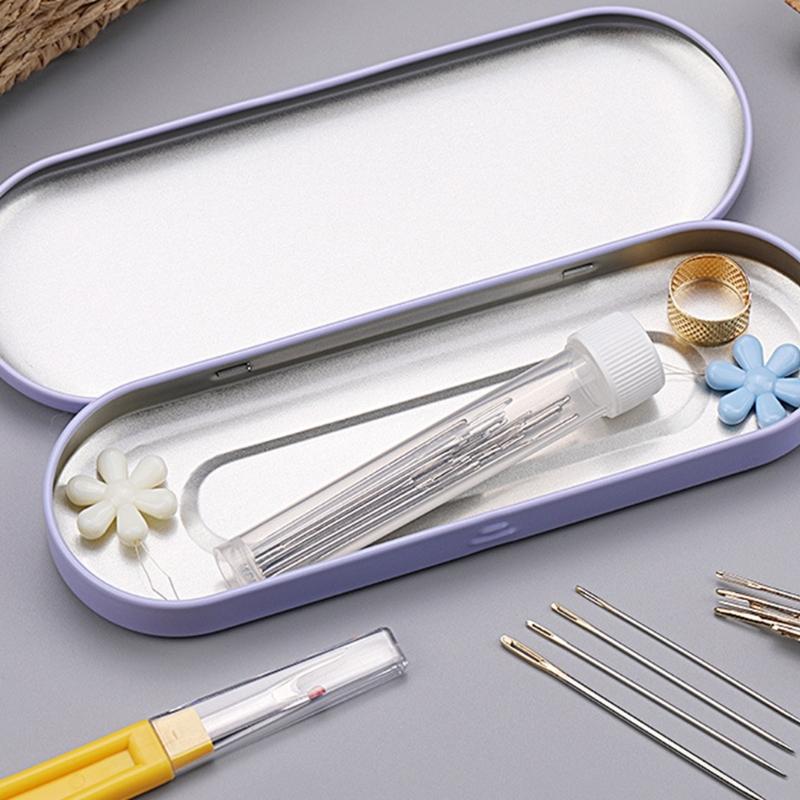 Игла с большим ушком для ручного шитья, игла для вышивания с нитковдевателем, напёрстком и футляром для хранения для ремонта одежды
