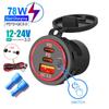 Автомобильное зарядное гнездо PD3.0 и QC3.0, два порта USB C, водонепроницаемое, со светодиодным сенсорным переключателем, 78 Вт, быстрая зарядка 12 В/24 В для мотоадаптера